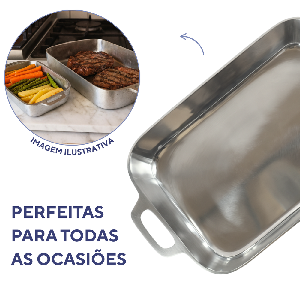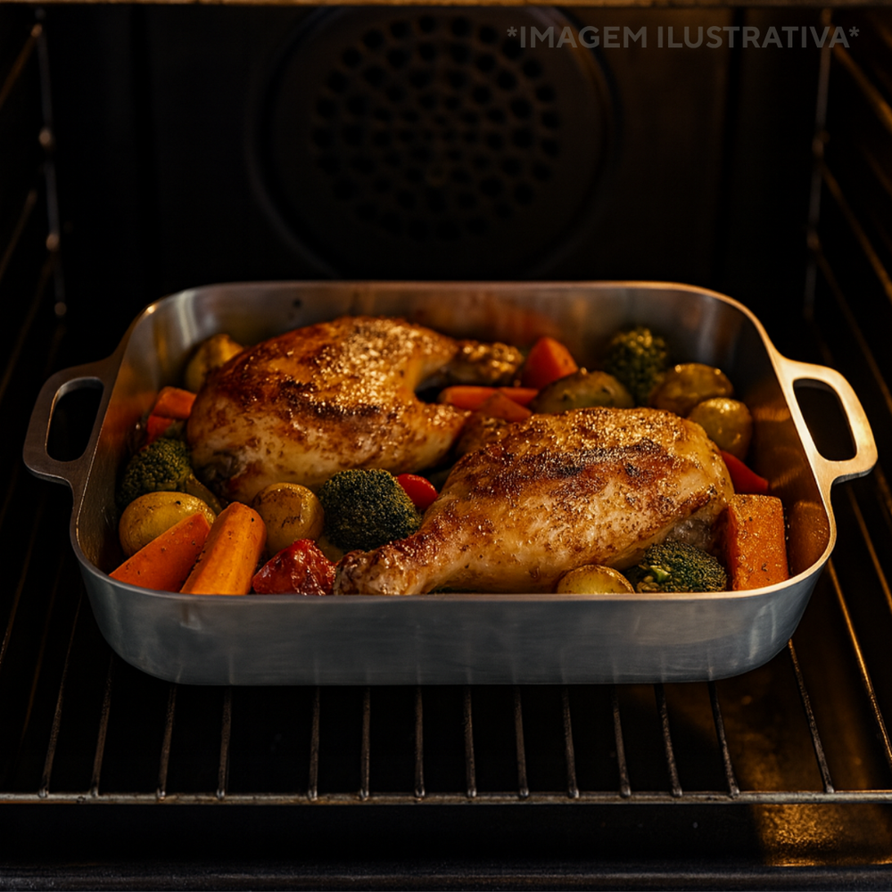 A assadeira em alumínio fundido é a escolha perfeita para quem busca resistência, durabilidade e resultados de alto nível na cozinha. Feita em peça única e com excelente condução térmica, garante assados uniformes e saborosos.
