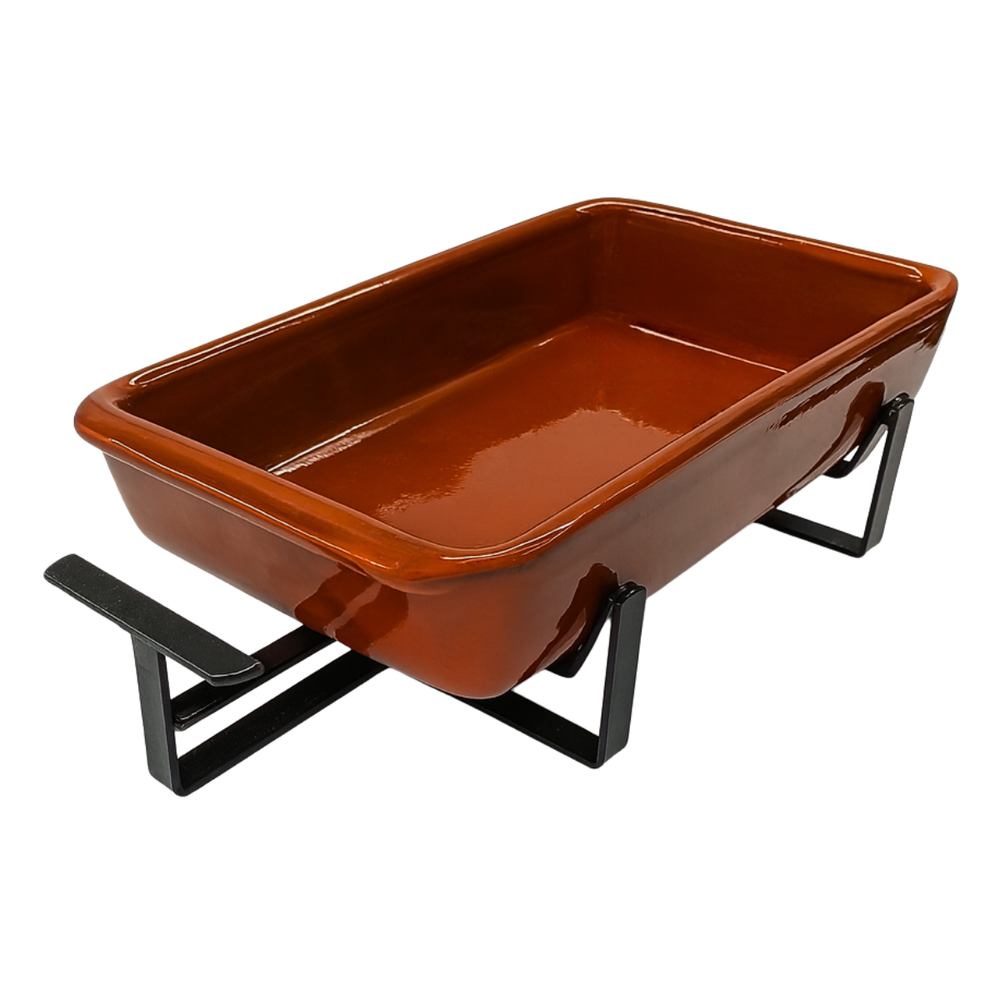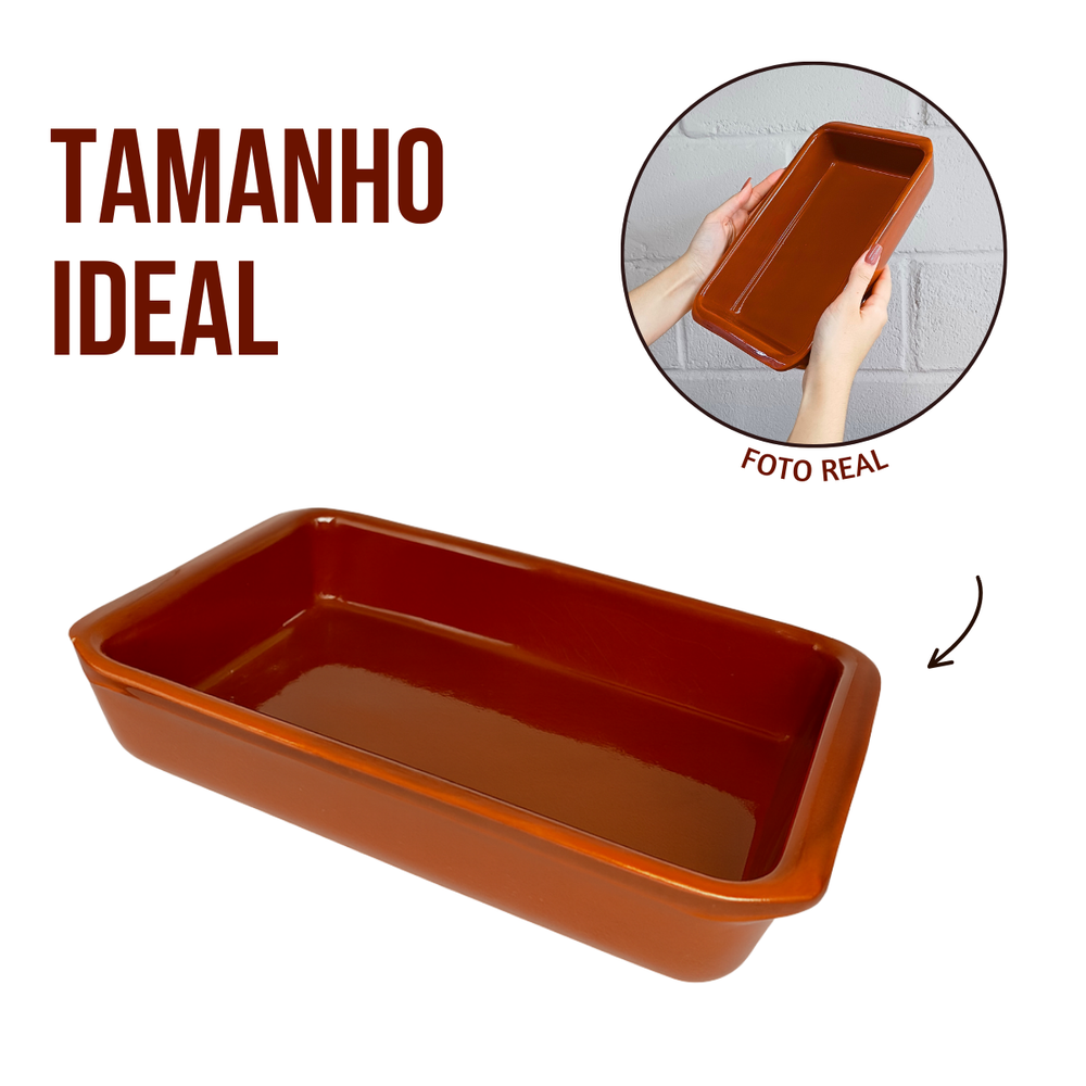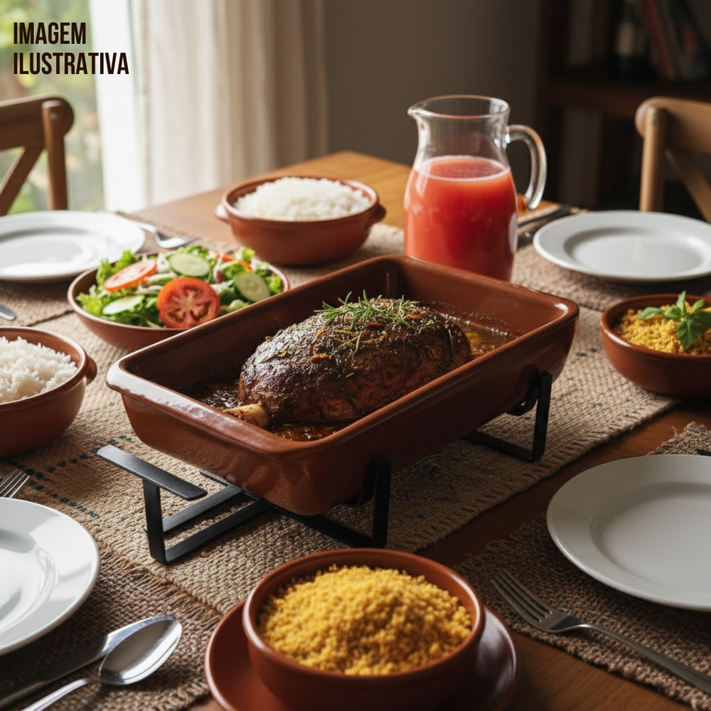 Realce o sabor das suas receitas com esta assadeira de barro artesanal com suporte de ferro, perfeita para servir e preparar pratos tradicionais com aquele toque caseiro. A peça é feita em barro de alta qualidade, garantindo cozimento uniforme, retenção de calor por mais tempo e apresentação rústica à mesa.