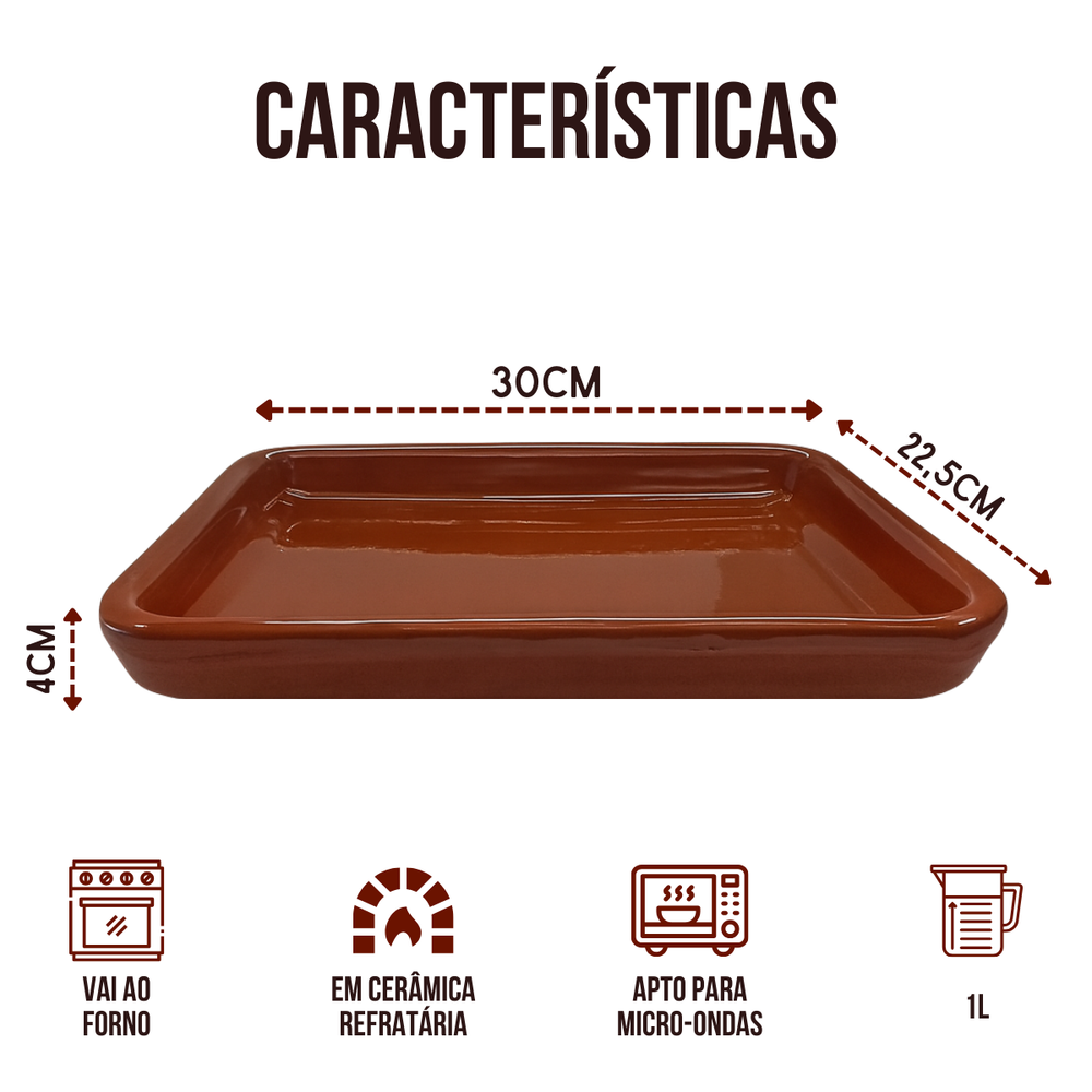 Ideal para assados, carnes, peixes, legumes, caldos e receitas típicas, podendo ser usada no forno, fogão à lenha e servir diretamente à mesa.