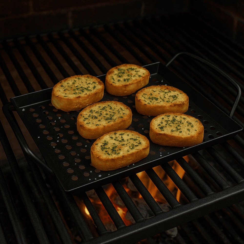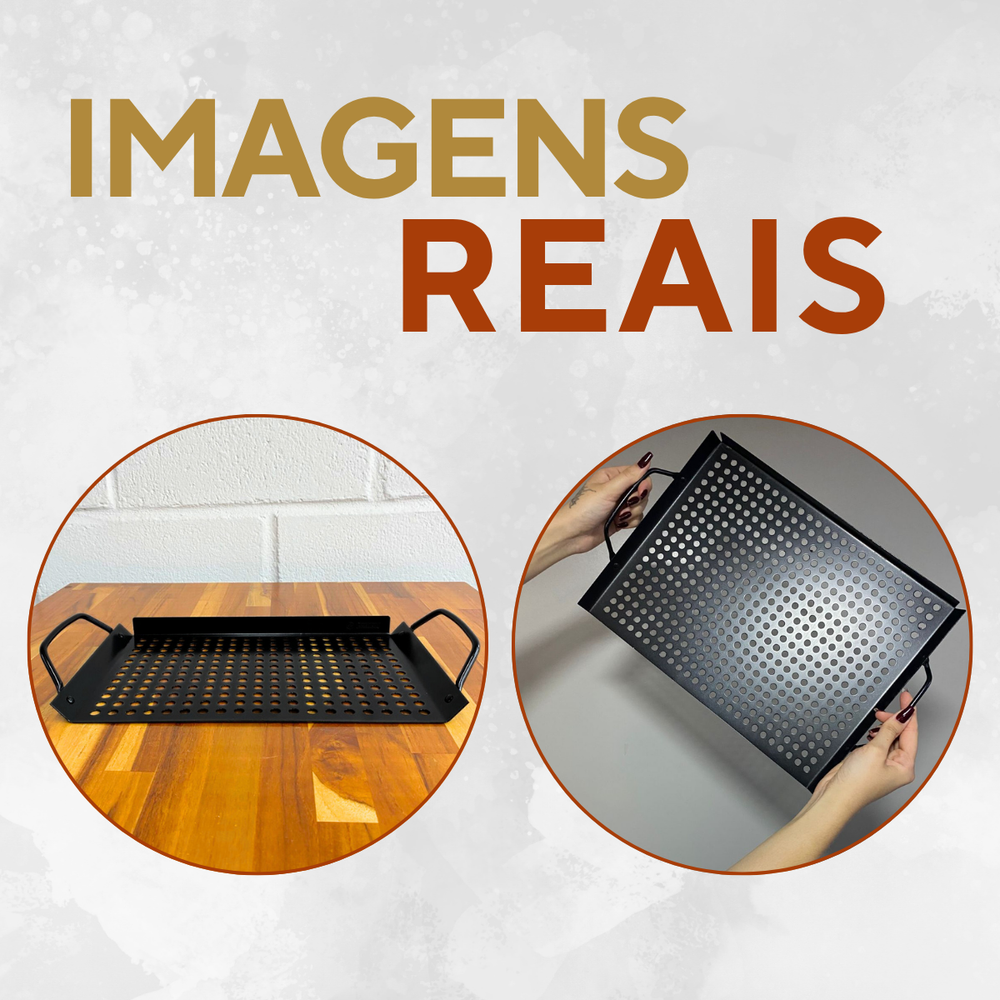 🔥 Pode ir diretamente sobre as brasas ou grelha, ideal para grelhar legumes, carnes, frutos do mar e acompanhamentos.