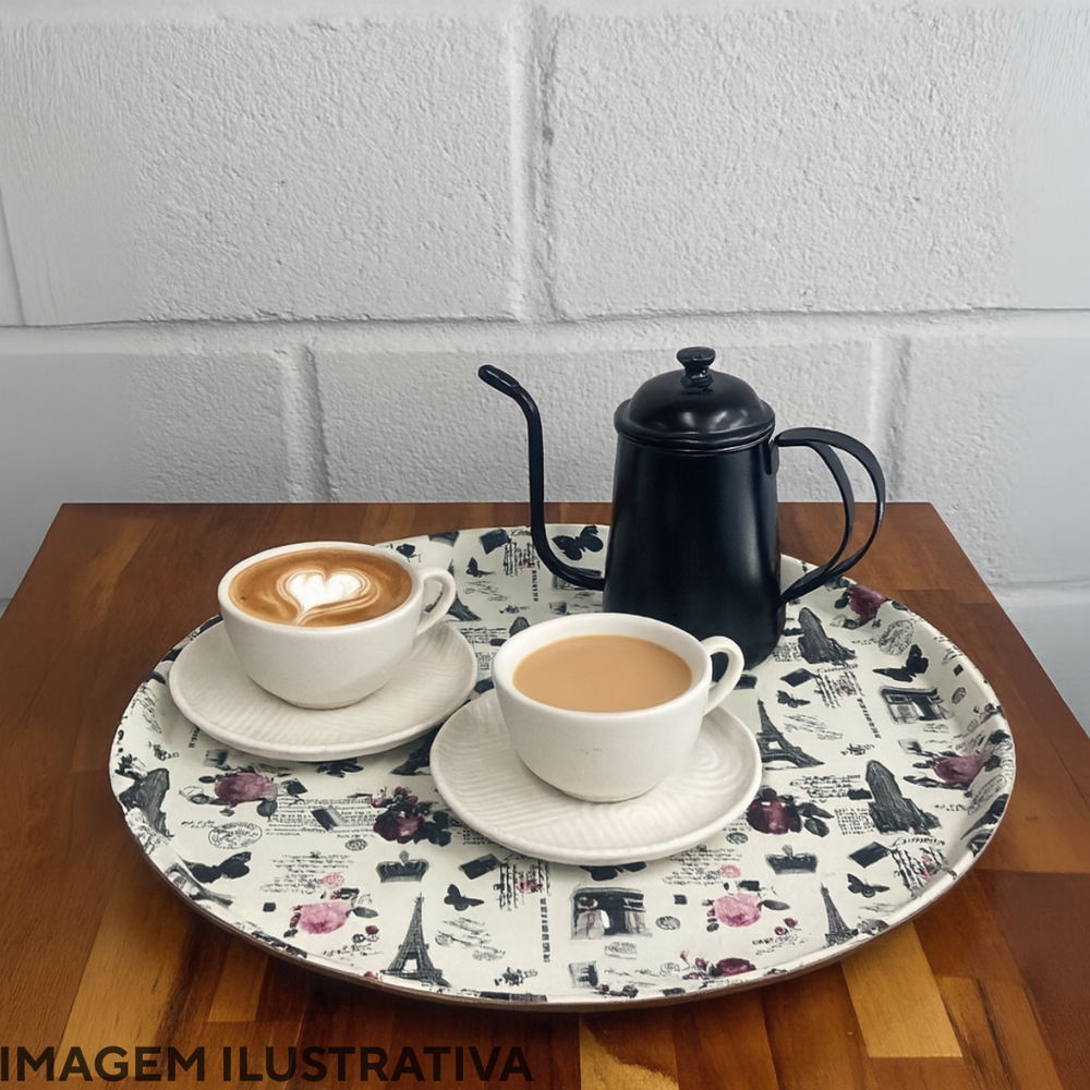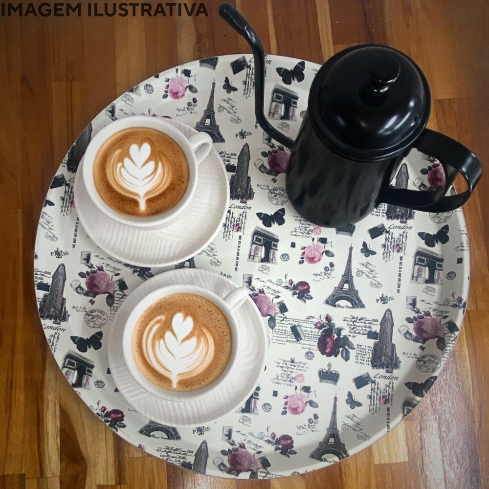 A Bandeja Redonda Paris Antiderrapante 40 cm é ideal para quem busca praticidade e elegância ao servir. Produzida em polipropileno de alta resistência, possui acabamento interno texturizado que garante maior segurança ao transportar copos, pratos e utensílios, evitando escorregamentos. Seu design com estampa Paris traz um toque sofisticado à mesa, sendo perfeita tanto para uso doméstico quanto profissional em estabelecimentos gastronômicos.