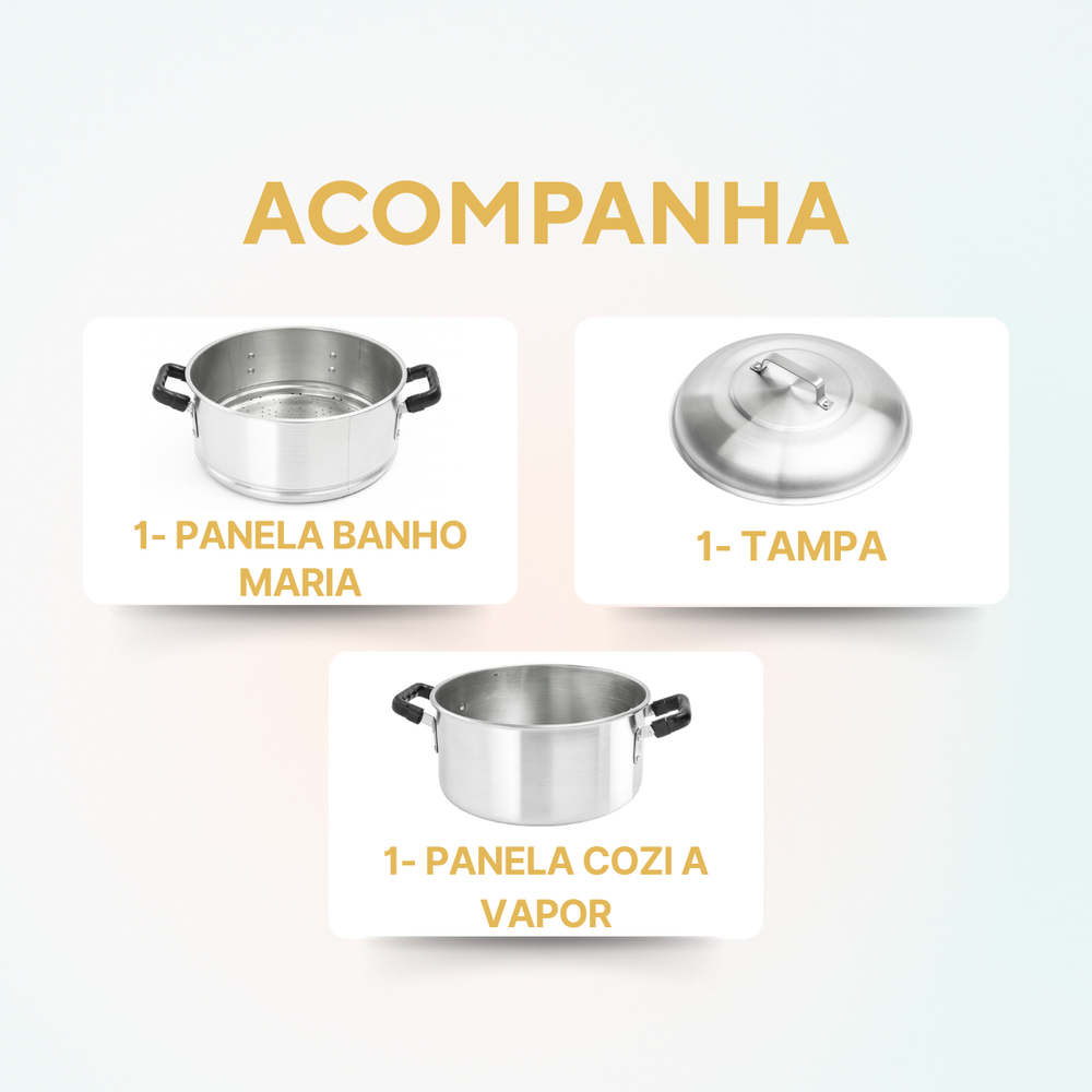 1- Panela Banho-Maria – Diâmetro: 34cm | Altura: 15cm