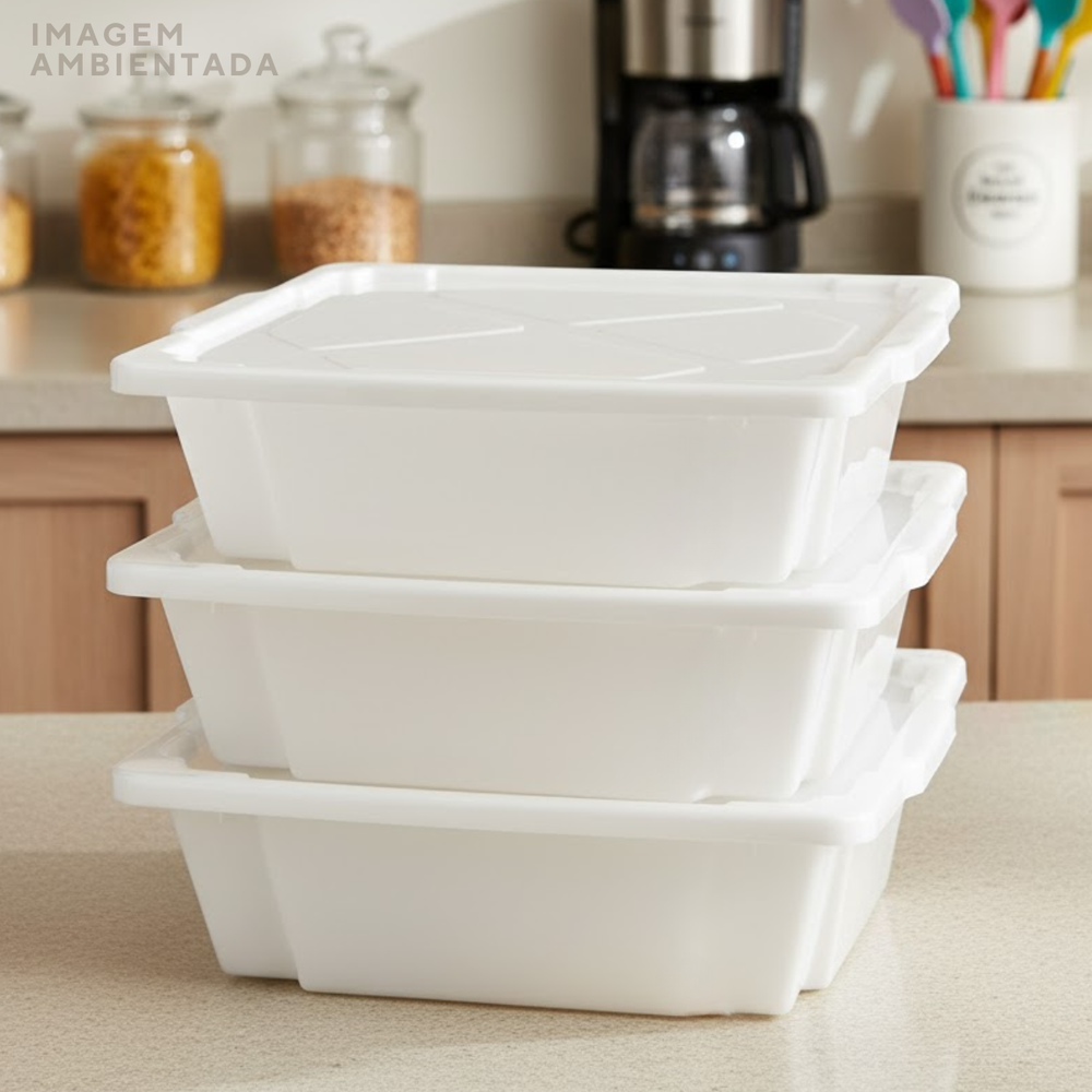 Prática e versátil, essa caixa organizadora de 26 litros é ideal para manter qualquer ambiente em ordem — lavanderia, cozinha, despensa, escritório, garagem e até estabelecimentos comerciais. Seu design empilhável otimiza o espaço e facilita o acesso aos itens do dia a dia.