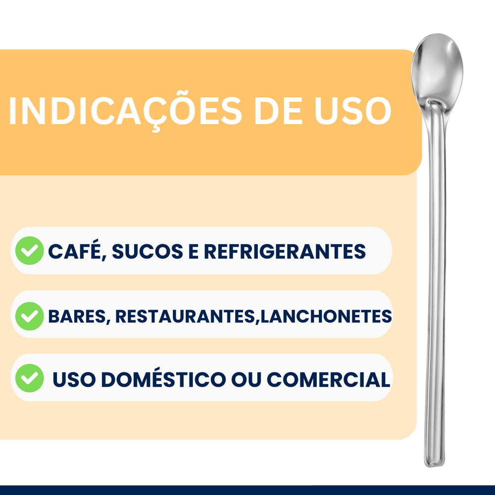 Sinônimo de bom gosto e de sofisticação, a colher de suco da é perfeita para mexer líquidos em pequenos recipientes. Produzida em aço inox que proporciona durabilidade e resistência e é perfeita para ser usada na rotina do dia a dia ou em ocasiões especiais.