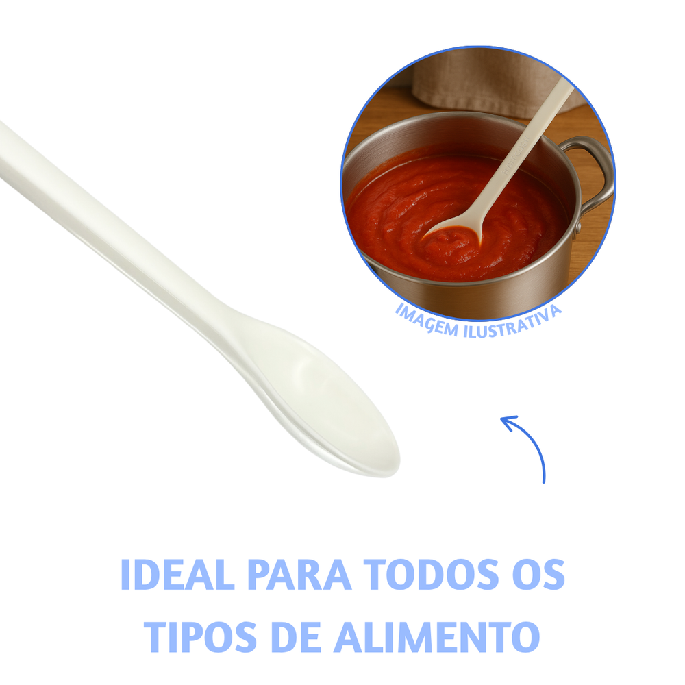 Perfeita para mexer caldos, feijoadas, molhos, sopas e grandes volumes de alimentos sem transmitir calor ao cabo. Muito utilizada em cozinhas industriais, buffets e food trucks.