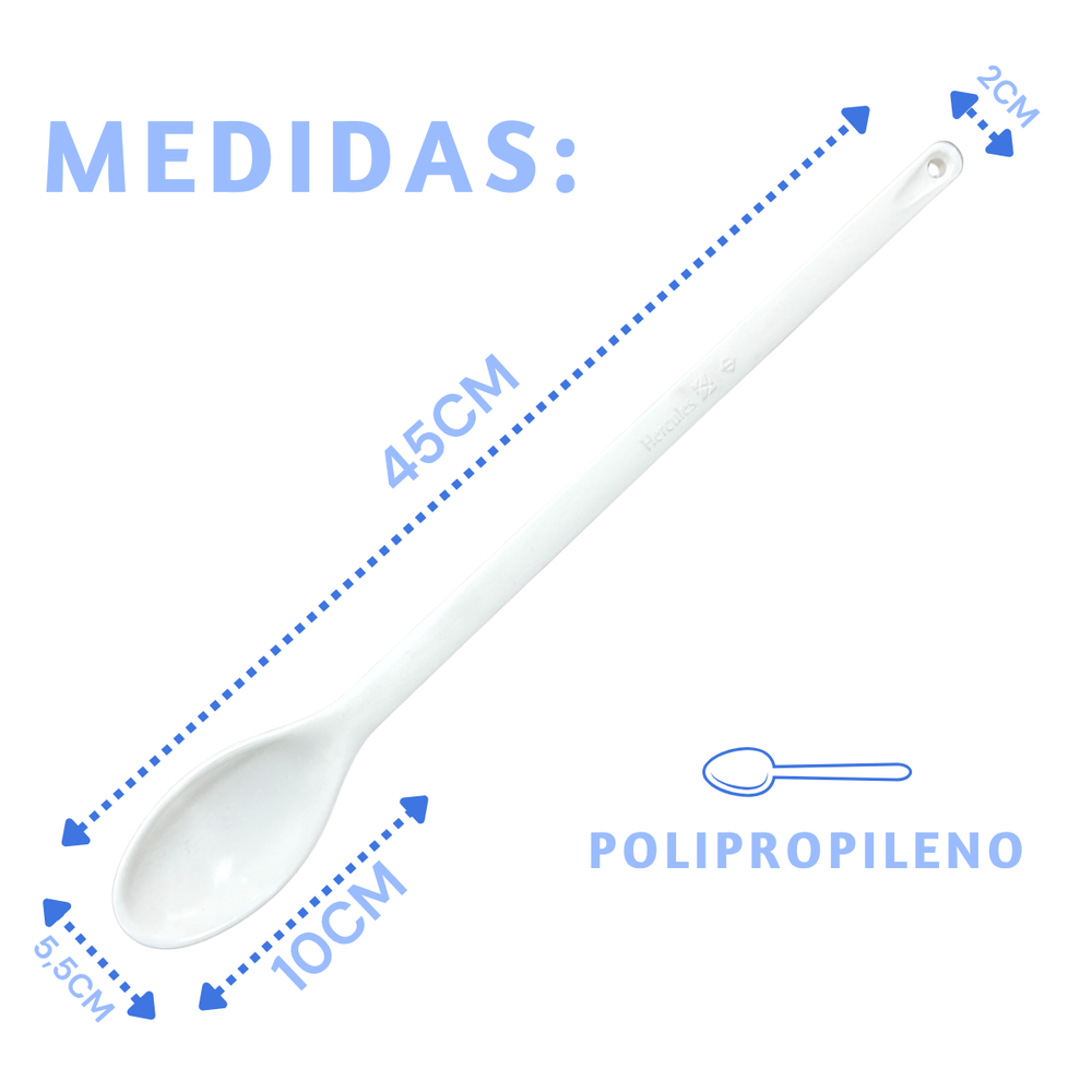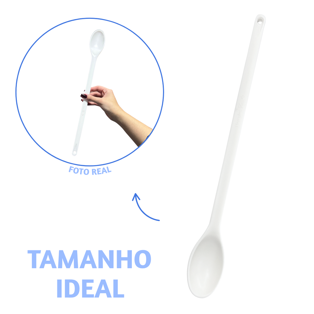 Com 45cm de comprimento, esta colher de polipropileno é ideal para uso em panelas grandes, caldeirões e preparos em escala industrial.