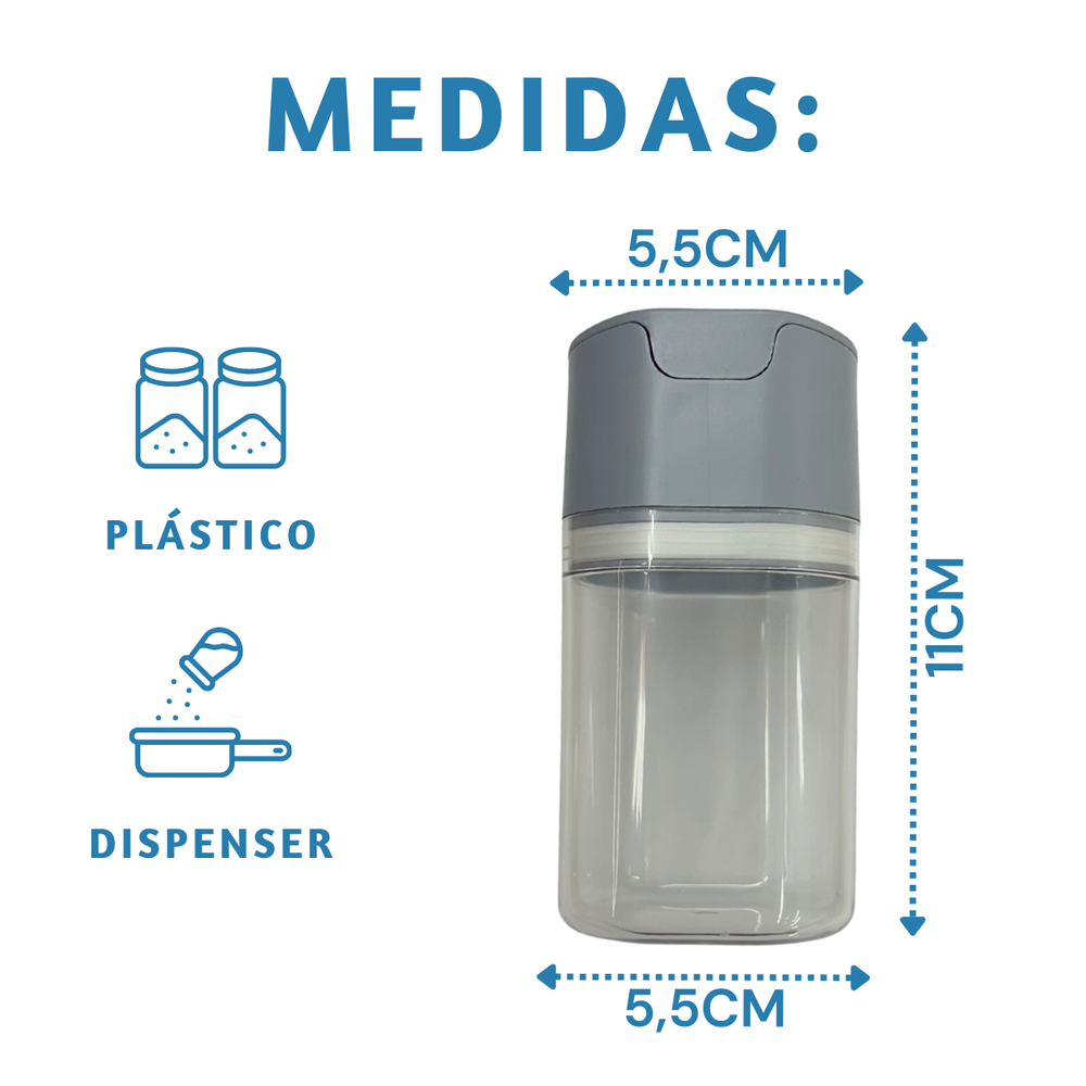 Mantenha sua cozinha prática e organizada com este dispenser para temperos de 150ml. Ideal para armazenar e servir sal, pimenta, orégano, páprica, açafrão e diversos outros condimentos com praticidade e higiene.