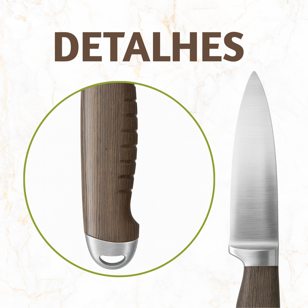As facas Mundial são destinadas ao público doméstico e profissional. Seu cabo foi desenhado para uma ergonomia perfeita, possibilitando movimentos variados com menor esforço. Além disso, possui proteção antimicróbica Sanitized e cabo texturizado que ajuda na aderência e limpeza. As lâminas são de aço inoxidável de alta qualidade, com polimento e afiação profissional. Indicada para cortar e fatiar carnes, frutas e legumes, além de picar cebola, alho, salsinha e temperos em geral. Com acabamento e afiação profissional.