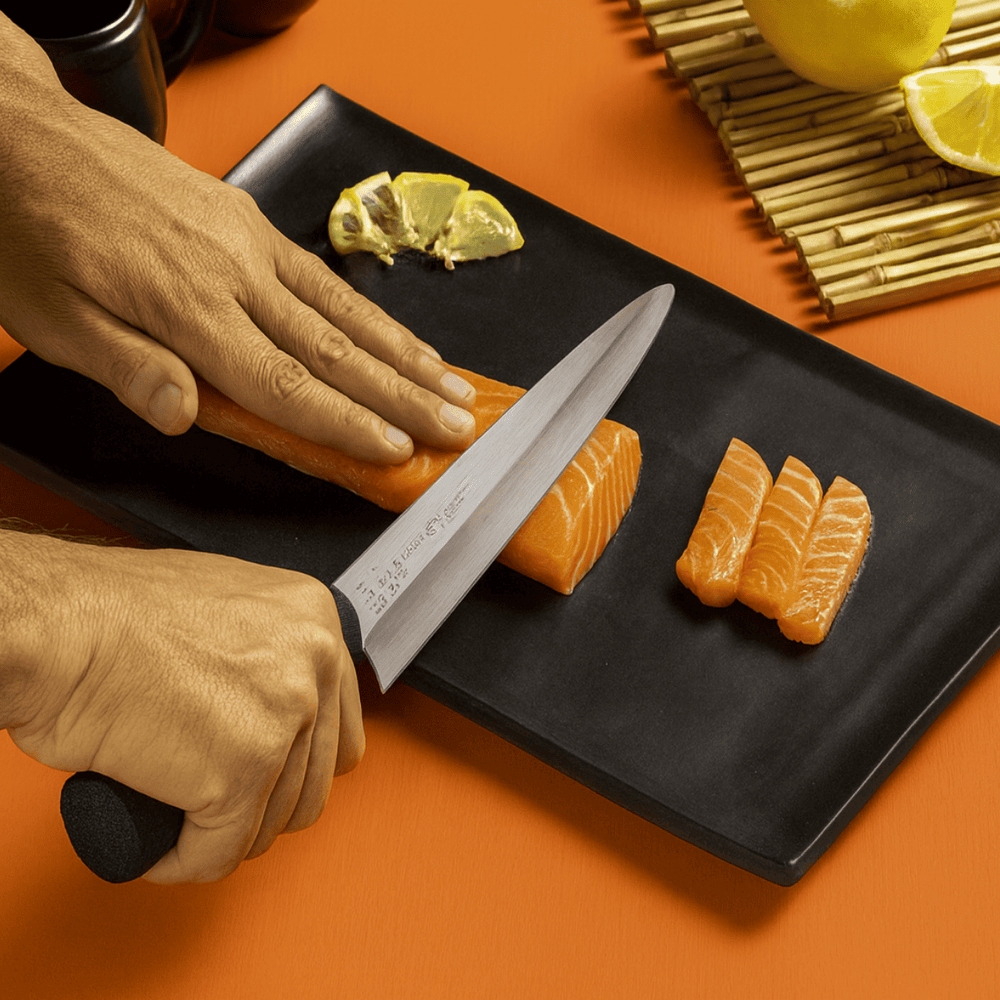 Perfeita para fatiar sashimis, peixes crus, frutos do mar e preparos delicados. Também pode ser usada em carnes macias e cortes finos de legumes.