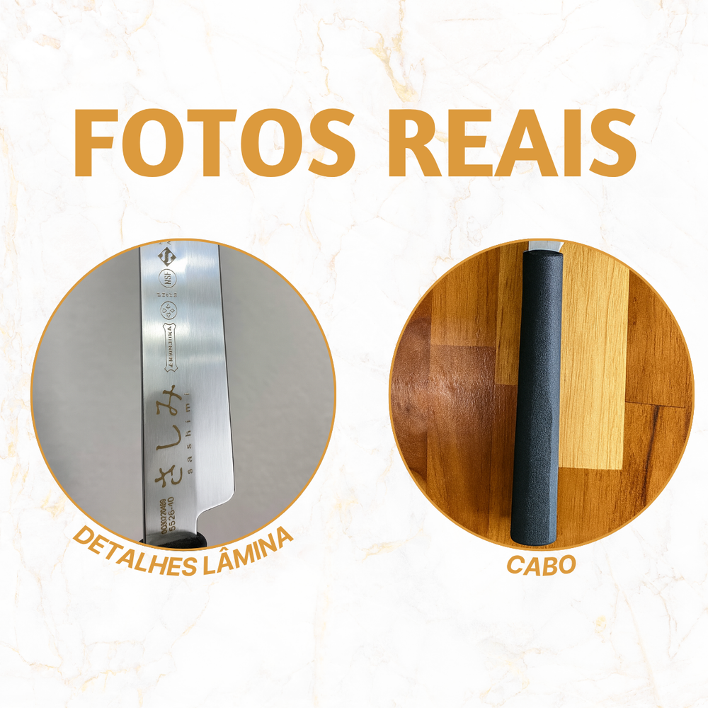 Perfeita para cortes longos e precisos, a Faca Sashimi é indispensável para quem aprecia a culinária japonesa. Seu design alongado garante fatias limpas e uniformes de peixes, preservando textura, brilho e sabor dos alimentos.