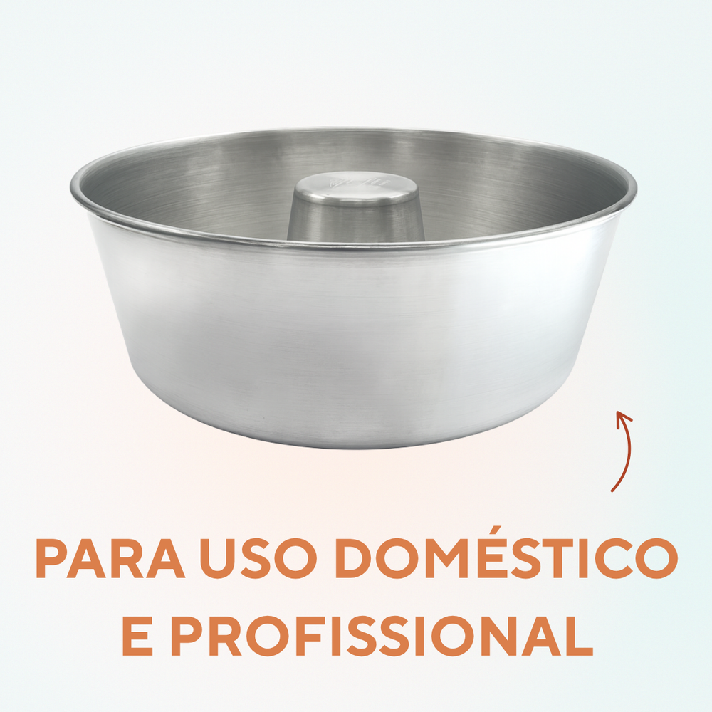 Com capacidade de 9,5 litros, esta forma de alumínio redonda com tubo é ideal para o preparo de receitas grandes, garantindo assados uniformes e um acabamento perfeito. Seu tubo central favorece a circulação do calor, resultando em bolos, pudins e outras receitas assadas de maneira homogênea.