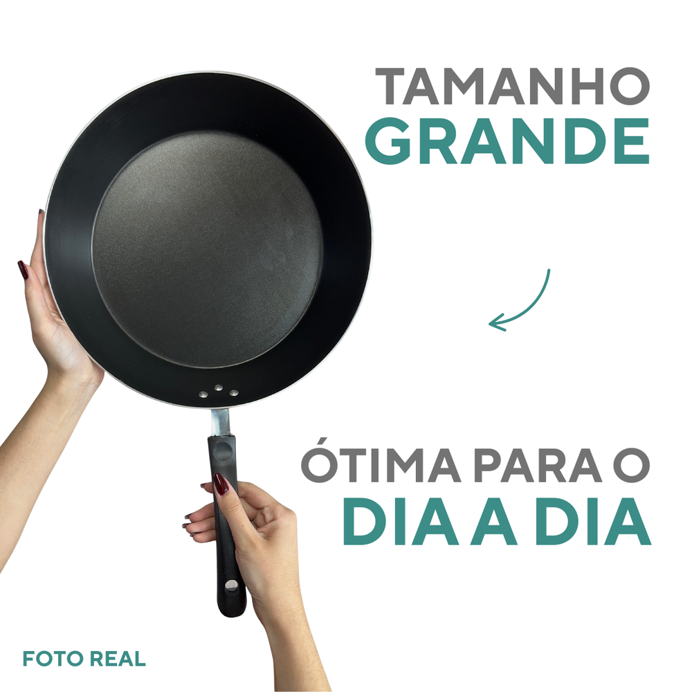 #Frigideira32cm #CozinhaProfissional #UtensíliosDeCozinha #ChefEmCasa #AlumínioAntiaderente #Durabilidade