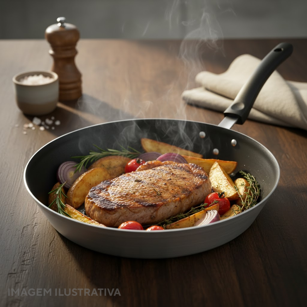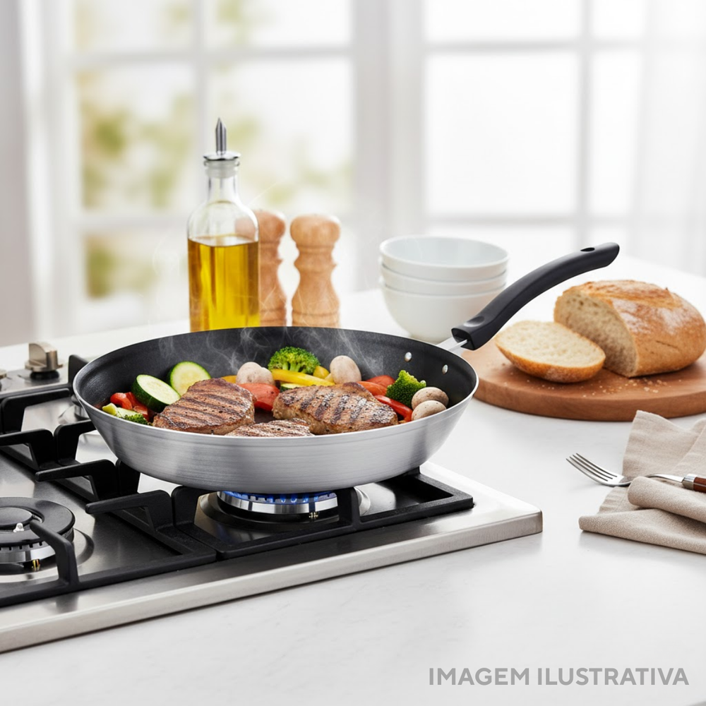 #Frigideira34cm #CozinhaProfissional #UtensíliosDeCozinha #ChefEmCasa #AlumínioAntiaderente #Durabilidade