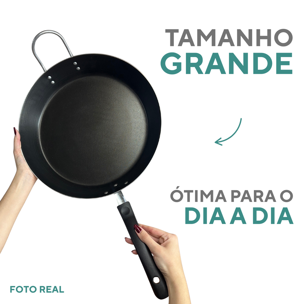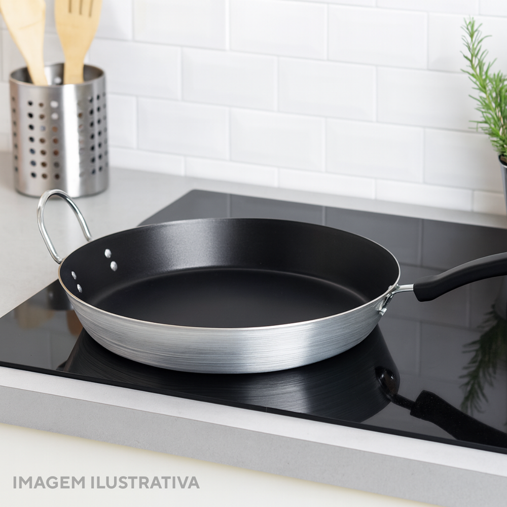 Produzida em alumínio de alta qualidade, garante excelente condução de calor e cozimento uniforme. O revestimento antiaderente evita que os alimentos grudem, facilitando a limpeza e preservando o sabor dos ingredientes.
