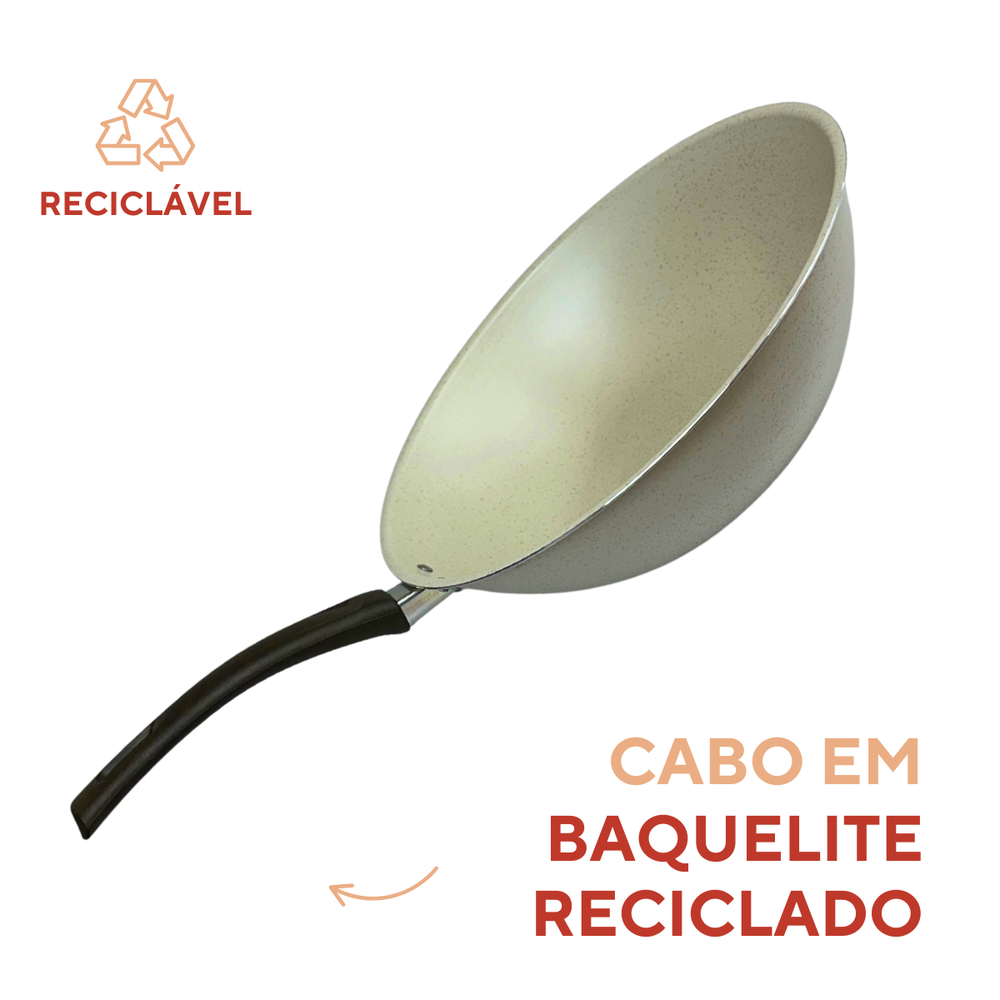 O cabo em baquelite antitérmico oferece segurança e conforto durante o manuseio. Além de funcional, é uma escolha sustentável — o alumínio é 100% reciclável, contribuindo para um consumo mais consciente.
