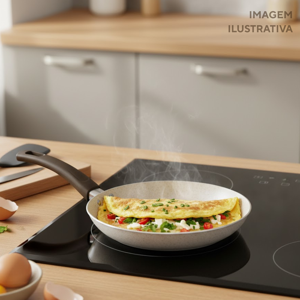 Perfeita para preparar ovos, porções individuais e receitas rápidas. Produzida em alumínio antiaderente de alta qualidade, distribui o calor de forma uniforme e evita que os alimentos grudem, garantindo mais praticidade e menos uso de óleo.