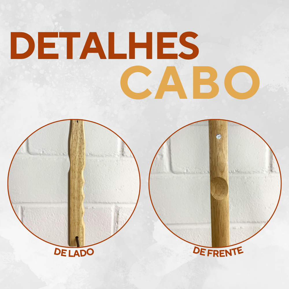 Cabo de madeira: oferece um design elegante, com pegada firme e confortável.