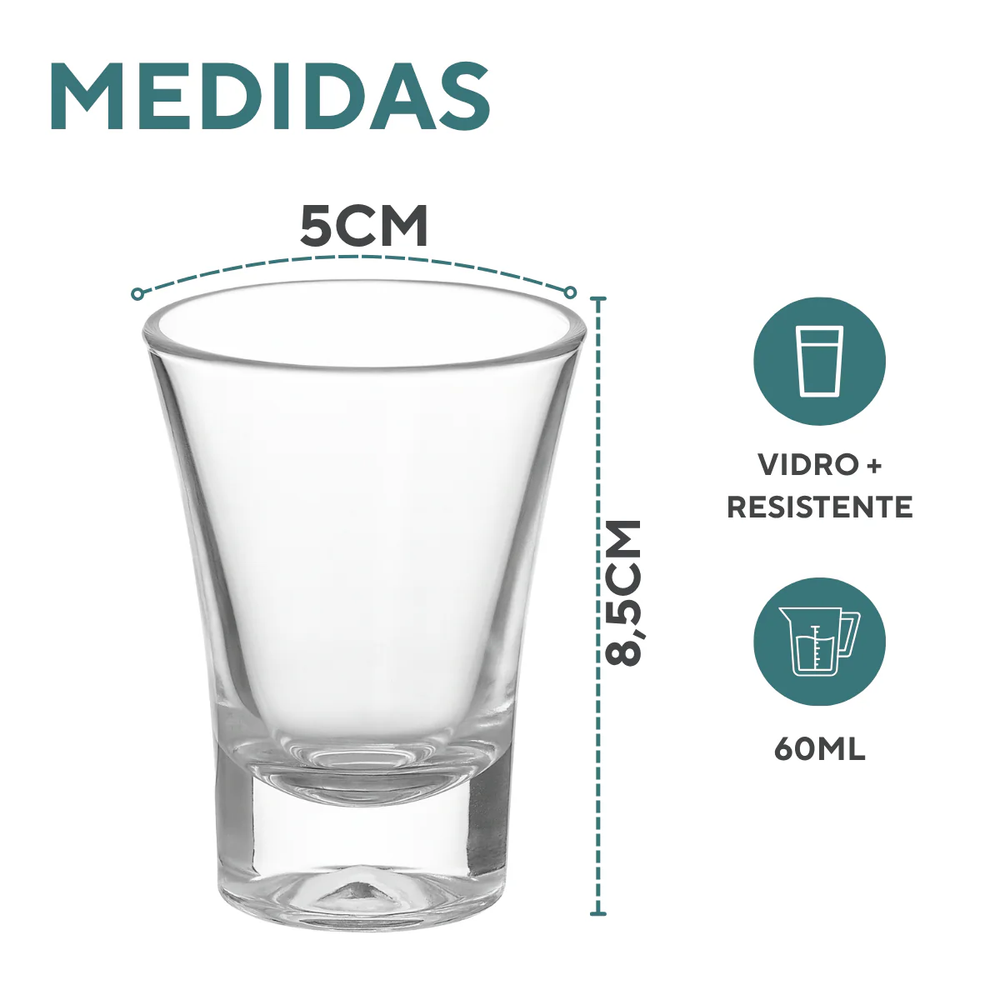 O conjunto inclui 4 copos de vidro ideais para servir doses de cachaça, tequila, licor ou degustações especiais.