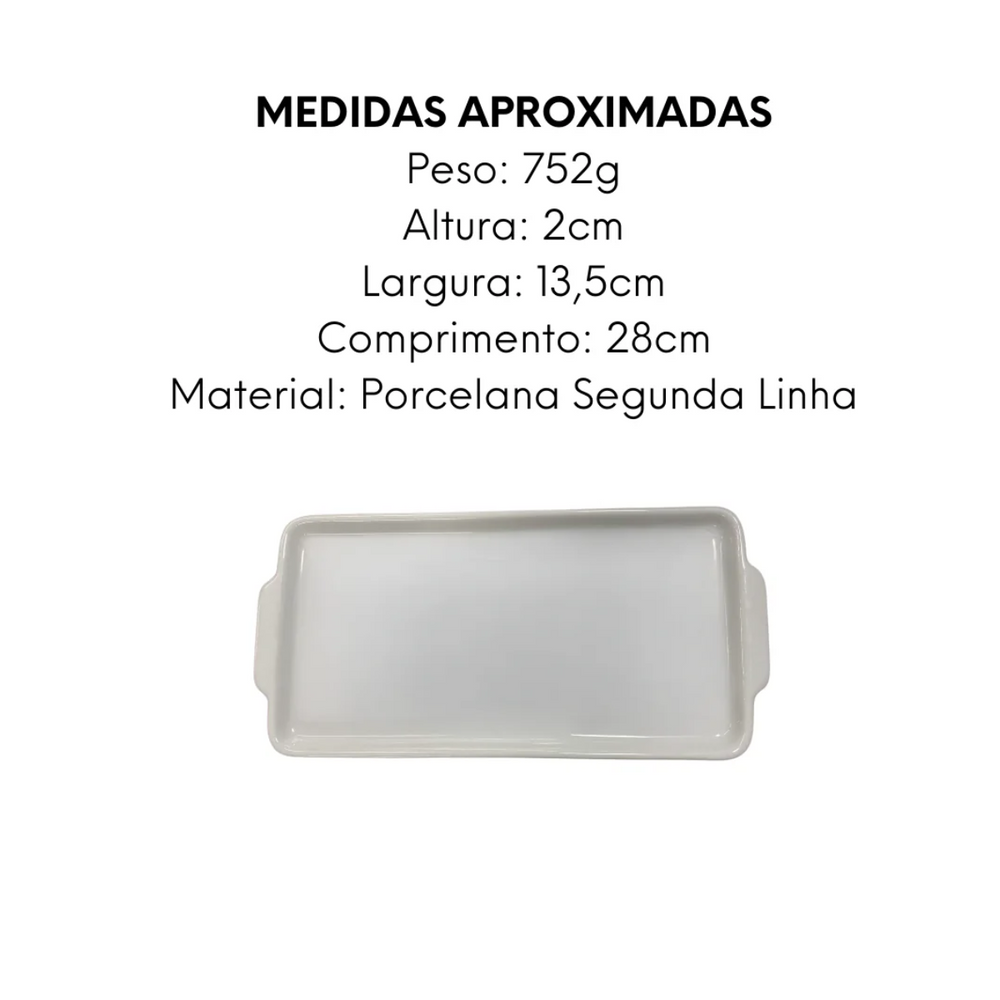 Seja no café da manhã, brunch ou em qualquer ocasião especial, esta bandeja adiciona um charme especial à sua apresentação culinária. Durável e esteticamente agradável, é uma adição indispensável à sua coleção de servir. Eleve seus eventos e refeições diárias com a bandeja retangular em porcelana de segunda linha.