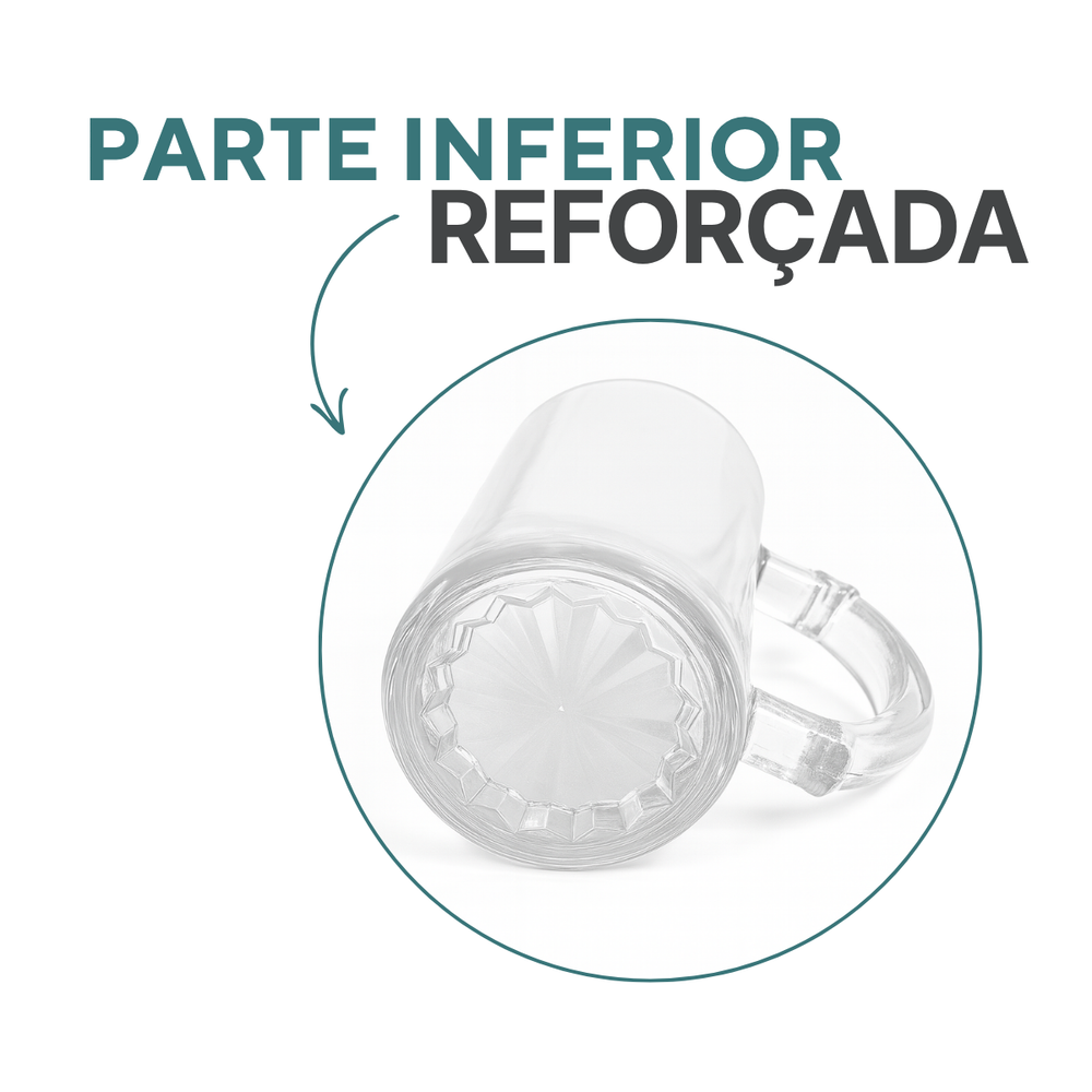 Com capacidade aproximada de 475ml, ela possui base reforçada com detalhes lapidados e alça ergonômica que proporciona firmeza e conforto no manuseio. Ideal para ocasiões especiais, churrascos, confraternizações ou uso diário.