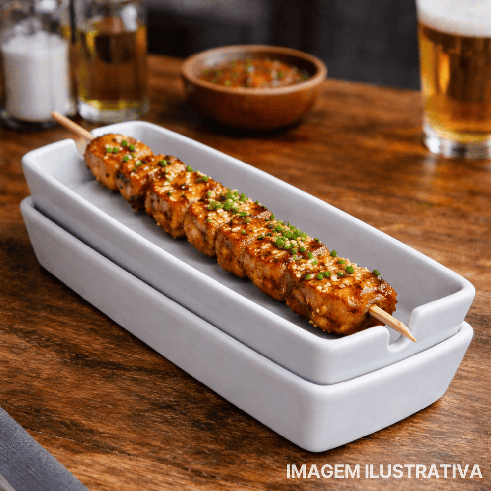 Ideal para servir espetinhos, petiscos, porções individuais, entradas e acompanhamentos, seja em casa, em bares, restaurantes ou eventos. Seu formato alongado facilita a organização dos alimentos e garante uma apresentação bonita e prática.