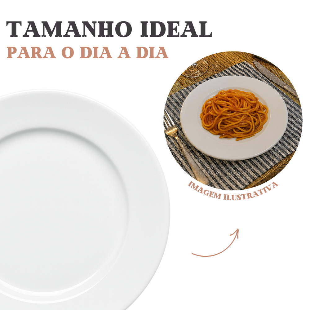Com 24cm de diâmetro e 3cm de altura, são ideais para servir refeições com requinte, seja no dia a dia, eventos especiais ou no seu negócio gastronômico.