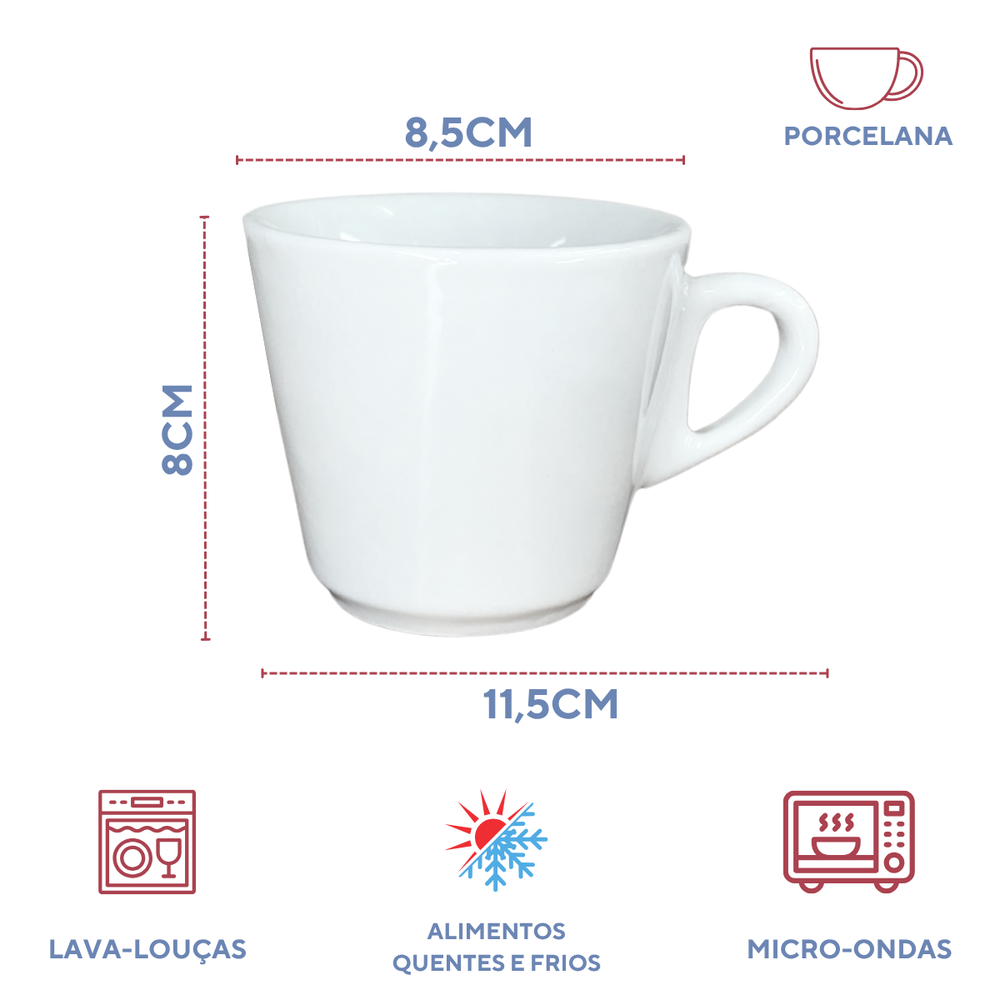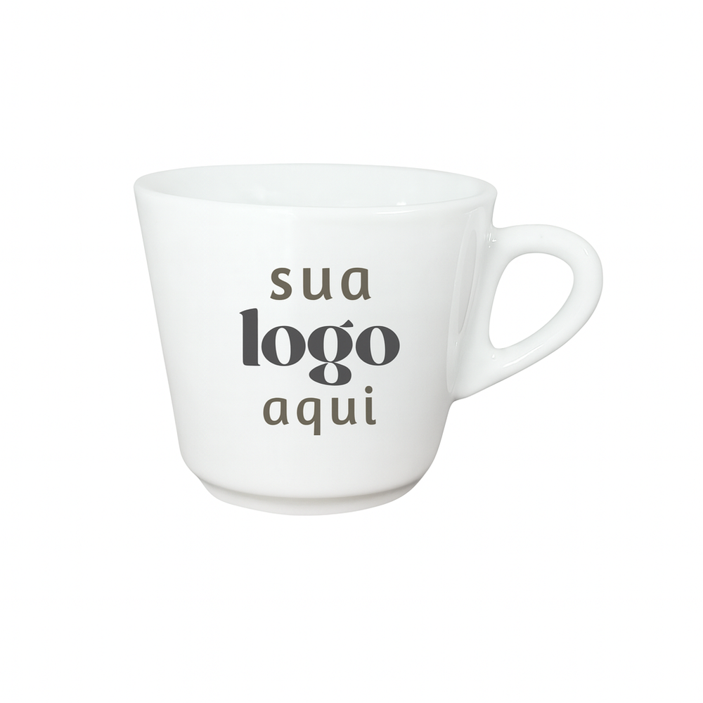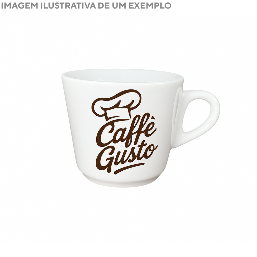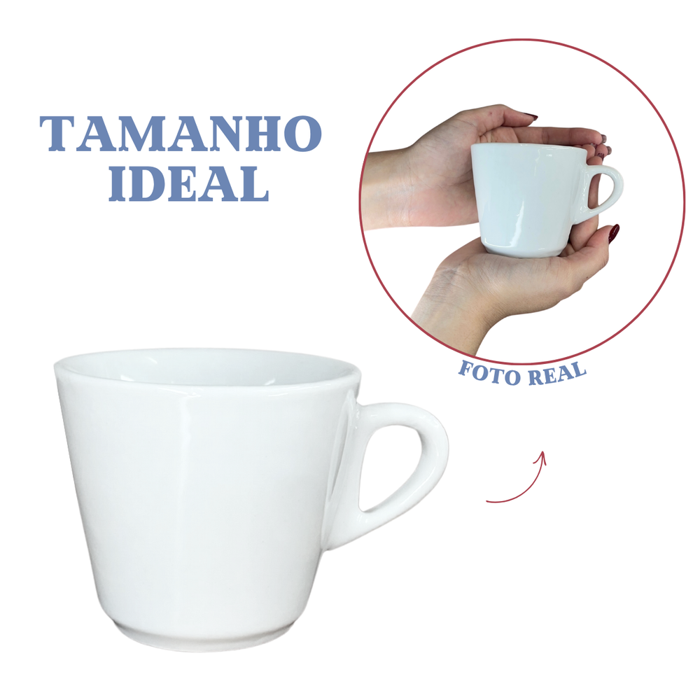 Essa xícara de porcelana branca personalizada é perfeita para servir café, chá ou outras bebidas quentes. Além de resistente e fácil de limpar, agrega identidade e charme à mesa.