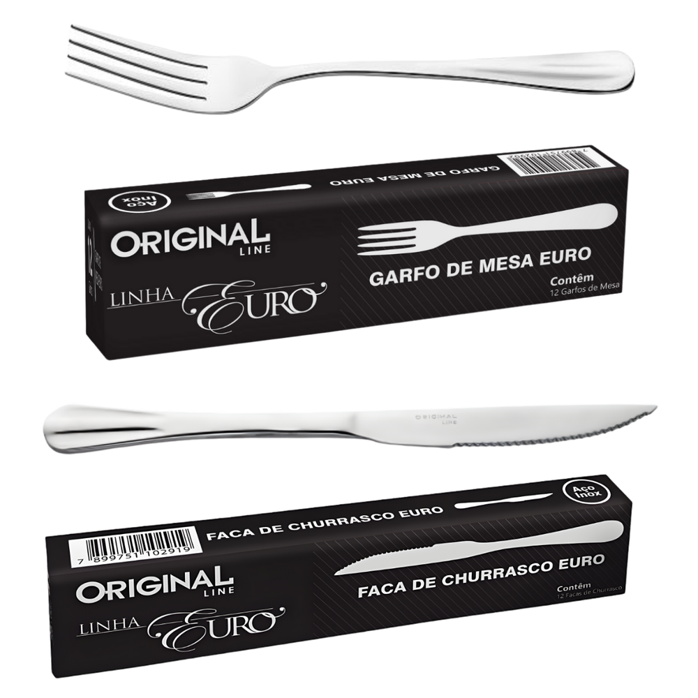 A linha Euro da Original Line é sinônimo de luxo e sofisticação, possui qualidade e acabamento impecável, talheres leves e brilhantes.