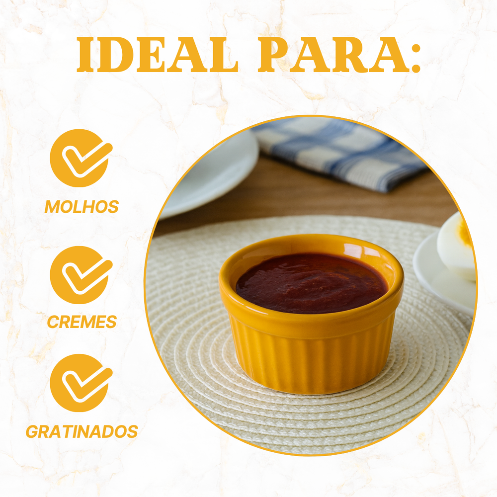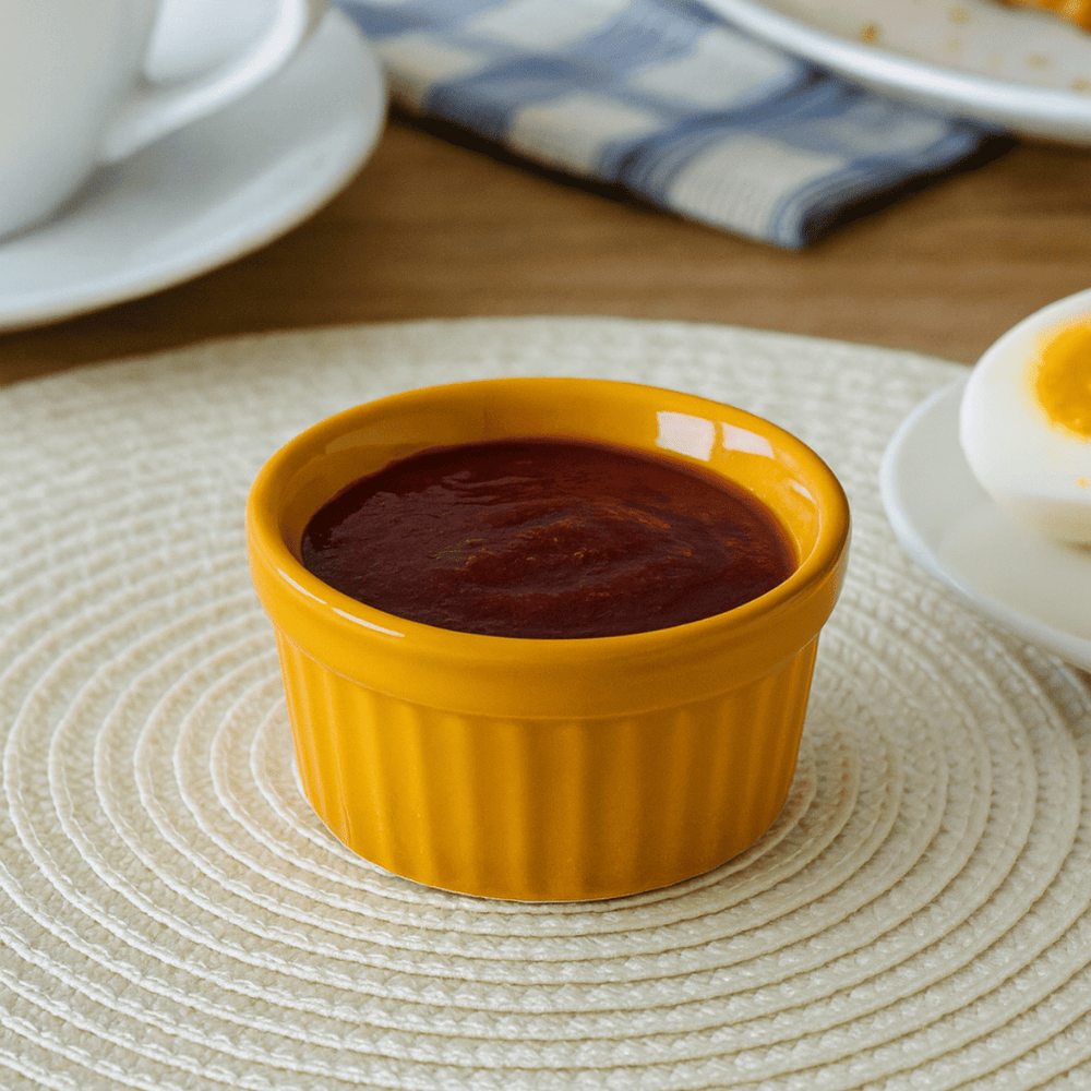 Pequeno no tamanho, grande na versatilidade. Este ramequim de porcelana tem acabamento liso e brilhante, trazendo um toque moderno e elegante à mesa. Ideal para servir molhos, temperos, manteigas, geleias ou pequenas porções de sobremesas individuais.