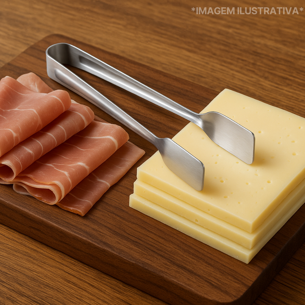 Sirva frios com praticidade e higiene. Para servir basta pressionar as hastes para pegar o alimento sem desperdício e sem sujeira.