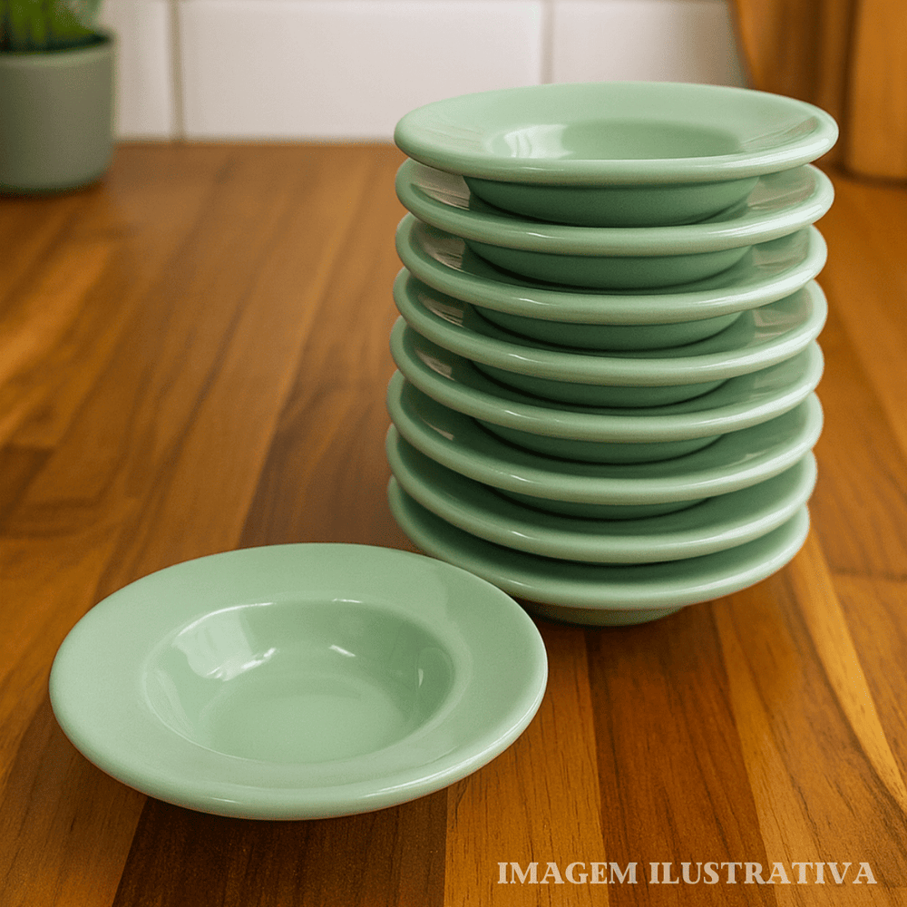 Acabamento esmaltado em verde, que valoriza a apresentação à mesa.