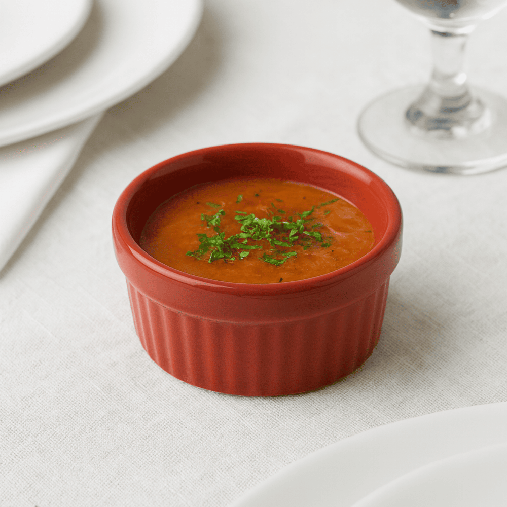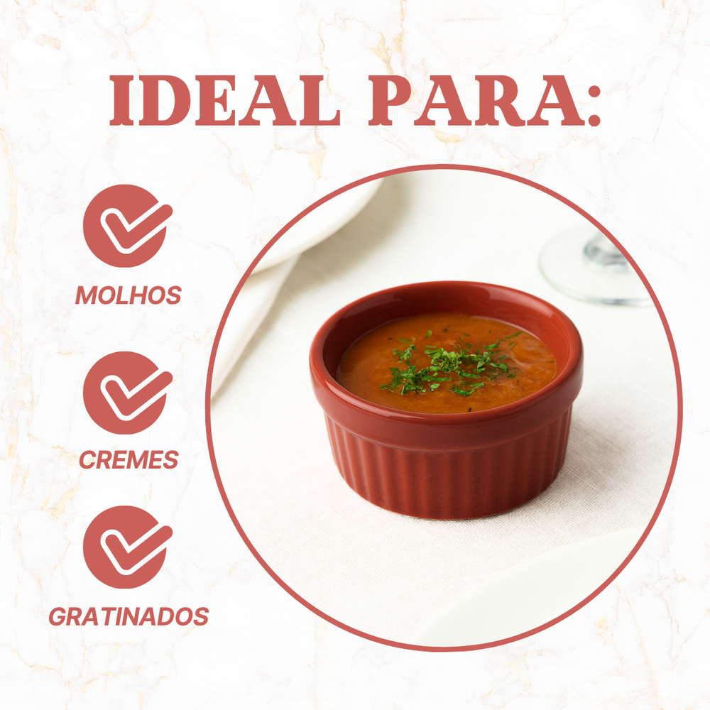Pequeno no tamanho, grande na versatilidade. Este ramequim de porcelana tem acabamento liso e brilhante, trazendo um toque moderno e elegante à mesa. Ideal para servir molhos, temperos, manteigas, geleias ou pequenas porções de sobremesas individuais.