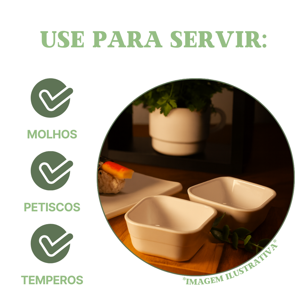 Perfeito para servir molhos, pastinhas, mini porções e entradas em apresentações elegantes.