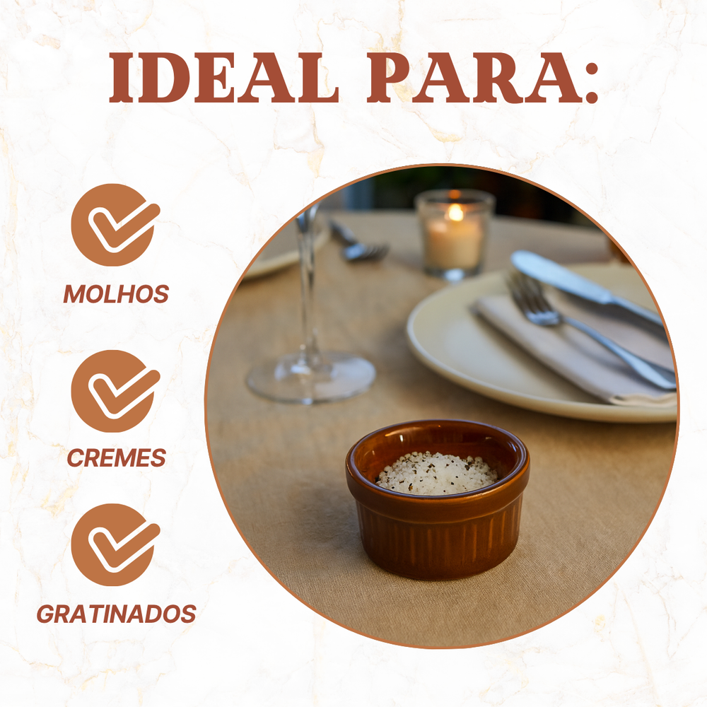 Pequeno no tamanho, grande na versatilidade. Este ramequim de porcelana tem acabamento liso e brilhante, trazendo um toque moderno e elegante à mesa. Ideal para servir molhos, temperos, manteigas, geleias ou pequenas porções de sobremesas individuais.