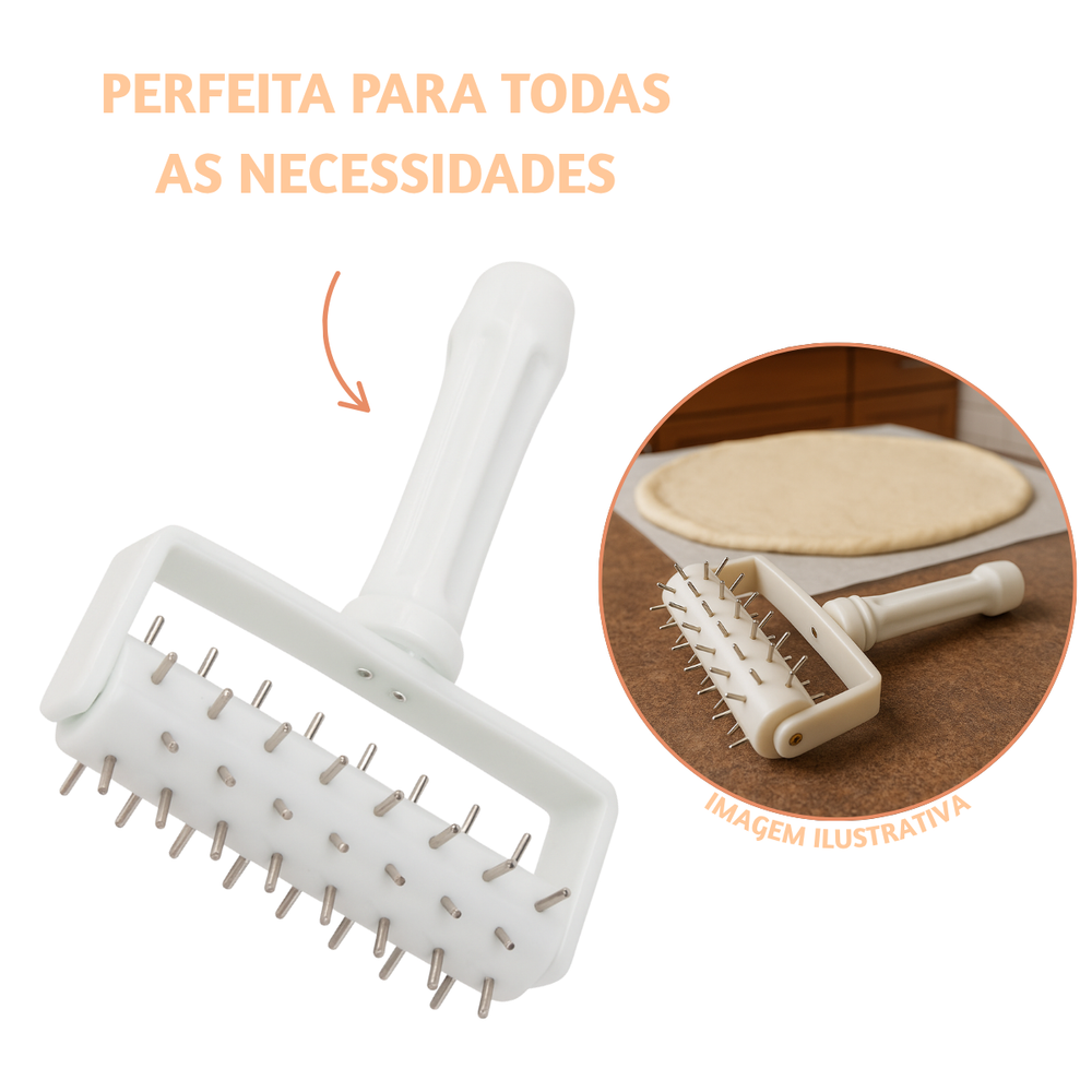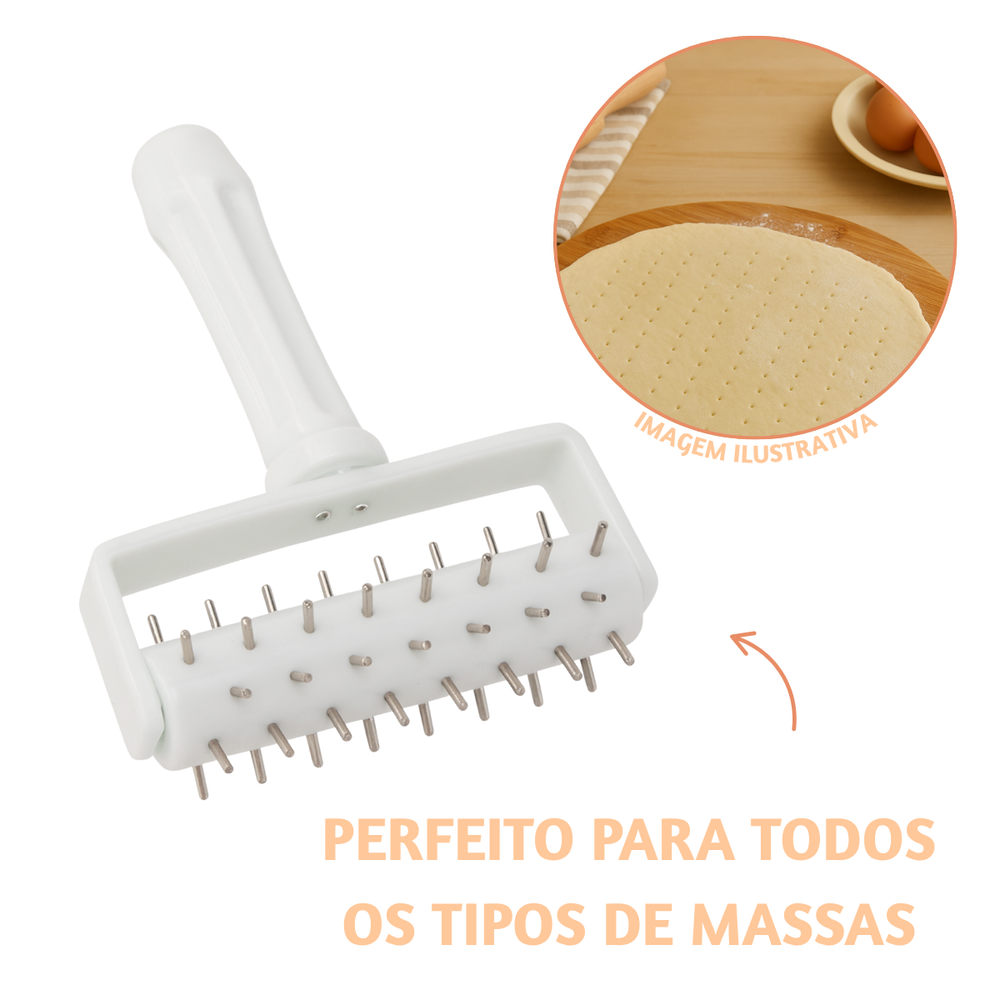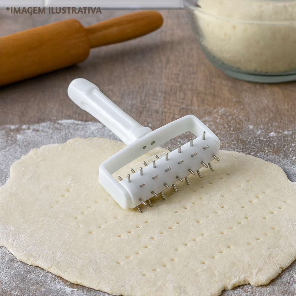 Facilite o preparo das suas receitas com este rolo furador, perfeito para evitar bolhas de ar e garantir um cozimento uniforme em pizzas, massas folhadas, tortas e empanadas.