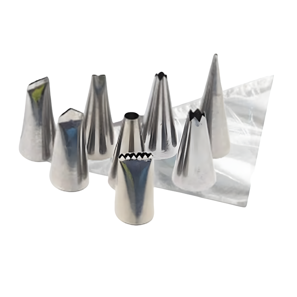 Os 8 bicos de aço inox permitem criar diferentes desenhos, bordas, flores e escritas com facilidade, atendendo tanto confeiteiros iniciantes quanto profissionais. Ideal para uso doméstico, confeitarias e padarias, é um item indispensável para quem gosta de caprichar nos detalhes.