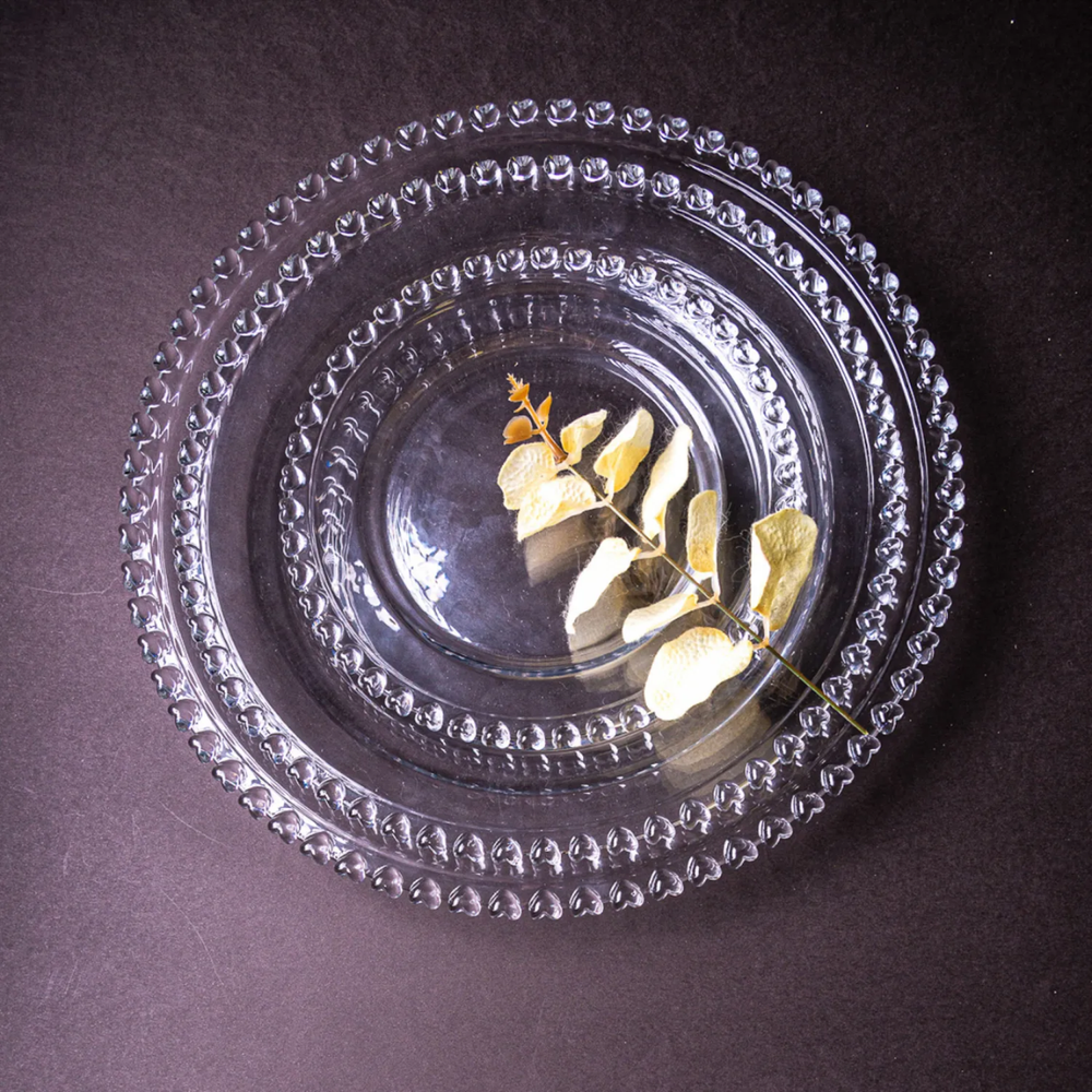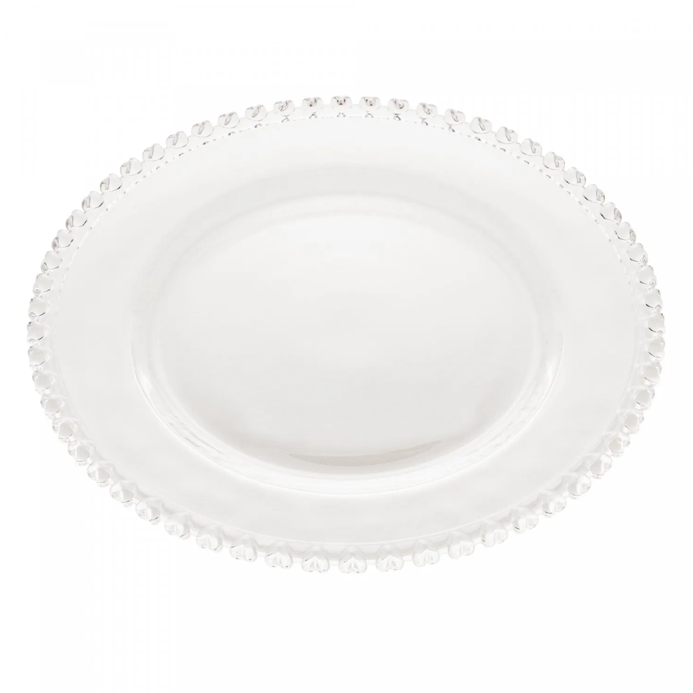 Com 32 cm de diâmetro, acomoda perfeitamente pratos rasos e fundos, garantindo um visual harmonioso. Sua transparência neutra combina com qualquer cor de jogo de jantar ou toalha de mesa.