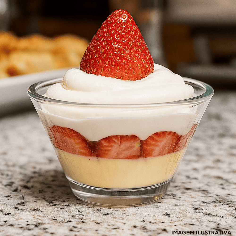 Fabricada em vidro transparente de alta qualidade, ela realça as cores e camadas das receitas, deixando a apresentação muito mais bonita e profissional. Ideal para uso doméstico, festas, eventos, buffets e restaurantes.