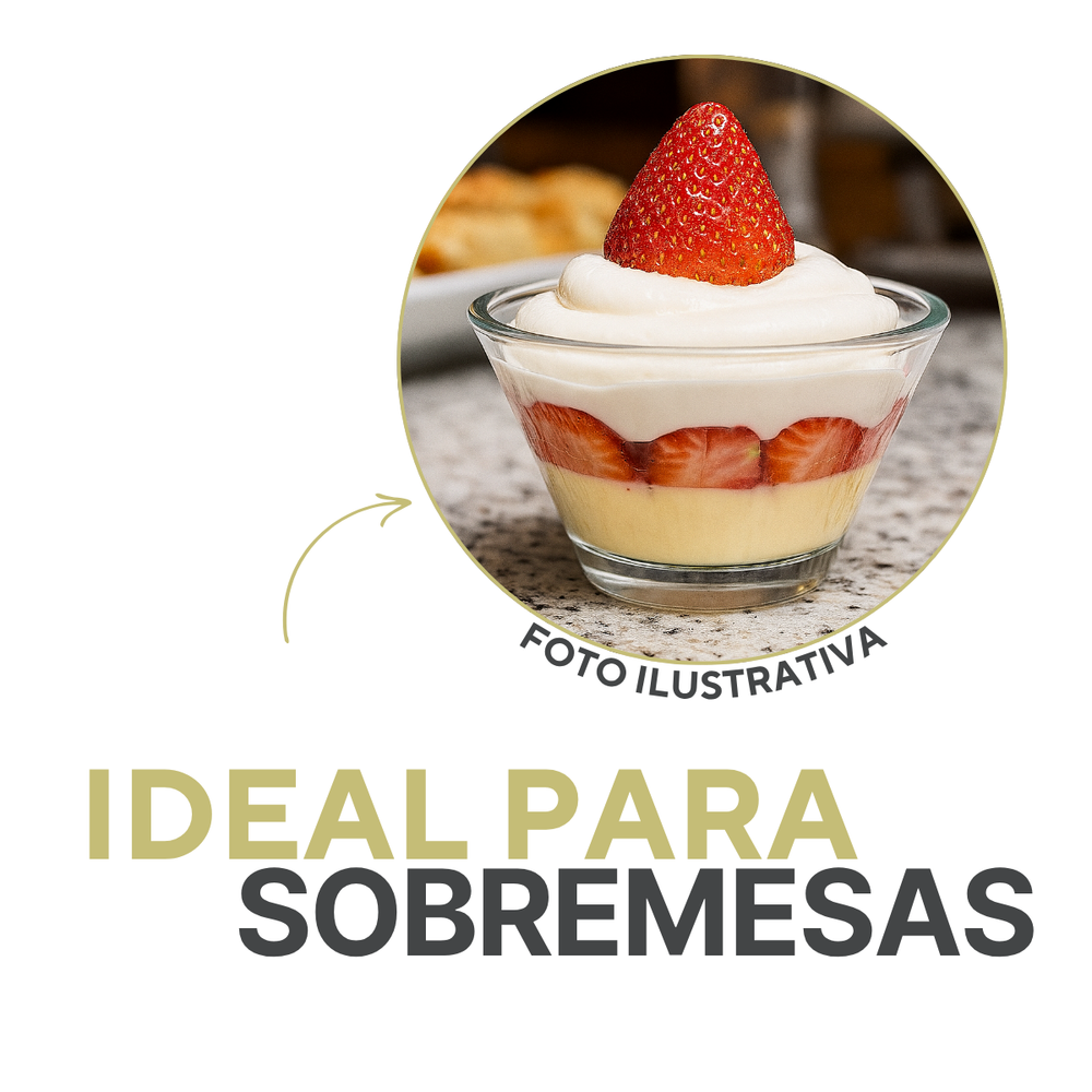 Essa tacinha de vidro é perfeita para mousses, pudins, pavês, saladas de frutas, creme de papaia, petit gâteau e porções individuais em geral.