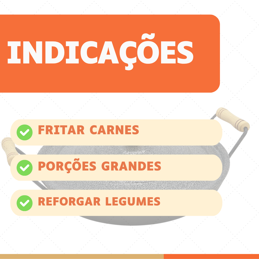 -Aço carbono de alta resistência: aquece rápido e distribui o calor de forma uniforme