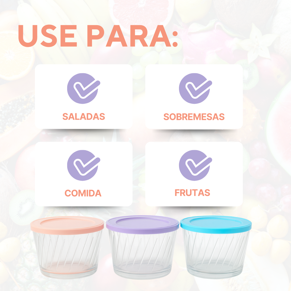 Perfeita para sobremesas, saladas, frutas, lanches, marmitinhas rápidas e para organizar ingredientes na cozinha.