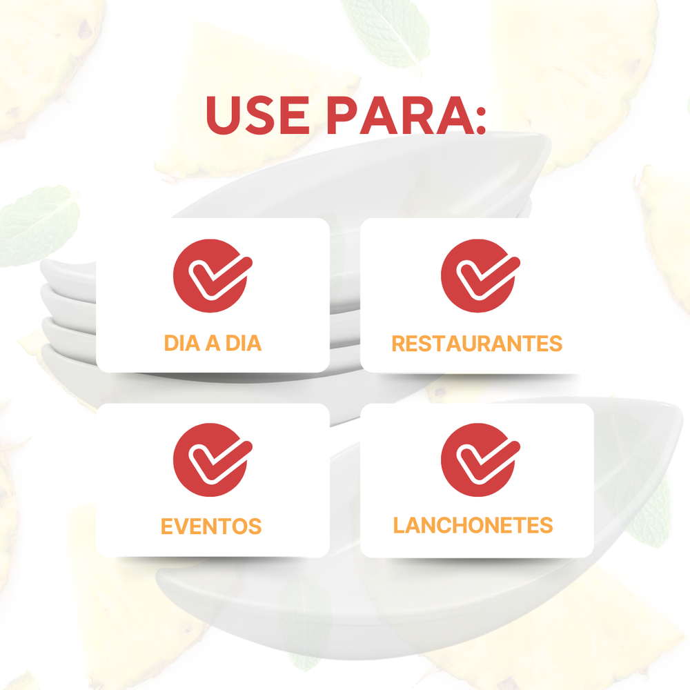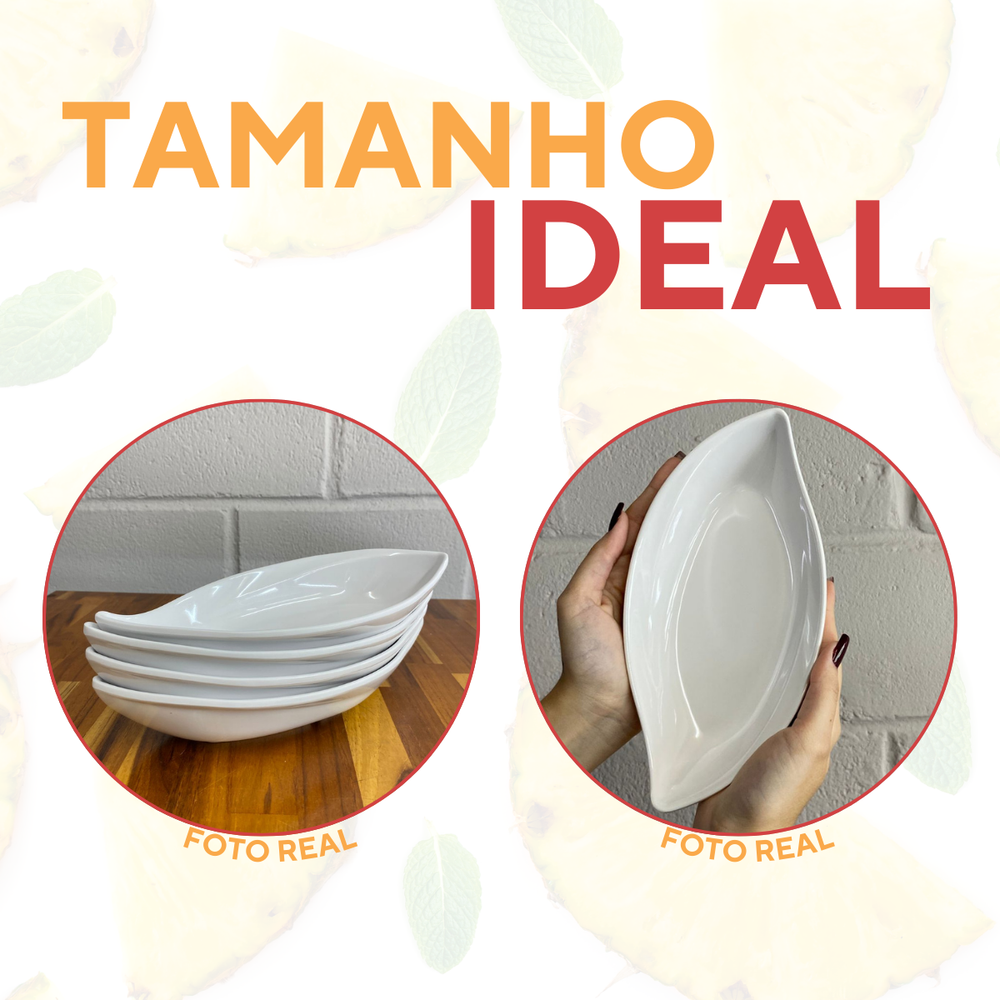 A Travessa Folha é produzida em melamina, material leve, resistente e de fácil limpeza. Seu design moderno em formato de folha traz charme e sofisticação para servir petiscos, entradas, molhos, acompanhamentos e sobremesas. Indicada tanto para uso doméstico quanto profissional em restaurantes, bares, cafés e buffets.