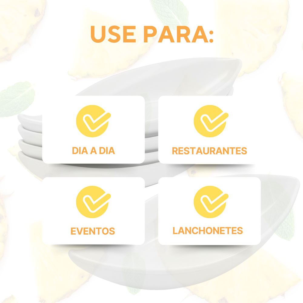 A Travessa Folha 18,8cm é produzida em melamina, material leve, resistente e de fácil limpeza. Seu design moderno em formato de folha traz charme e sofisticação para servir petiscos, entradas, molhos, acompanhamentos e sobremesas. Indicada tanto para uso doméstico quanto profissional em restaurantes, bares, cafés e buffets.