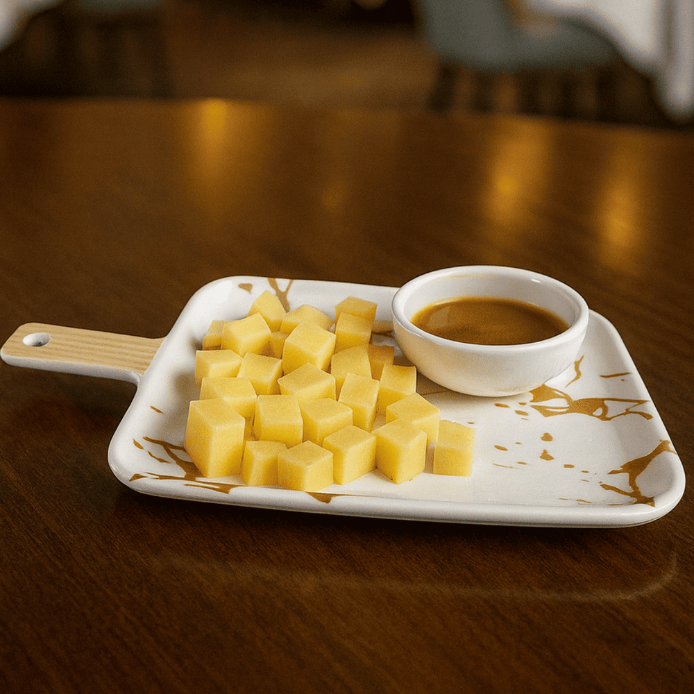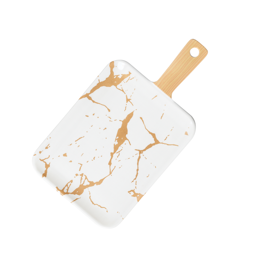 Elegante e funcional, esta travessa marmorizada é perfeita para servir com charme e praticidade. Seu design imita o mármore com realismo, trazendo um toque sofisticado à mesa — ideal para petiscos, molhos, porções individuais ou sobremesas.