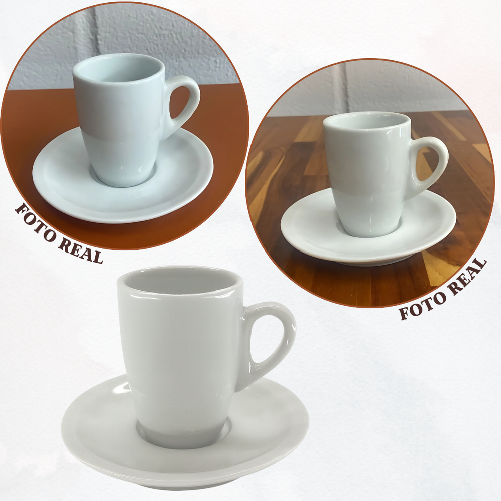 A xícara de porcelana com pires é ideal para servir café expresso, chá ou pequenas degustações com elegância e praticidade. Seu design clássico e o acabamento em porcelana branca garantem sofisticação em qualquer ambiente, seja em casa ou em estabelecimentos profissionais.