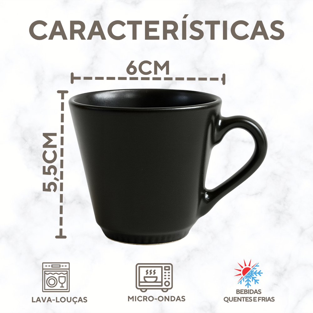 Produzida em cerâmica refratária de alta qualidade, ela suporta temperaturas elevadas sem deformar ou perder o brilho. Isso significa que você pode aquecer seu café no micro-ondas com total segurança — ideal para quem gosta de praticidade.